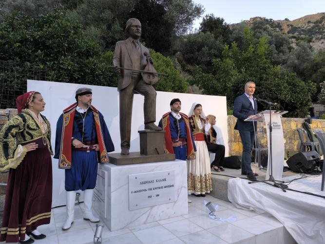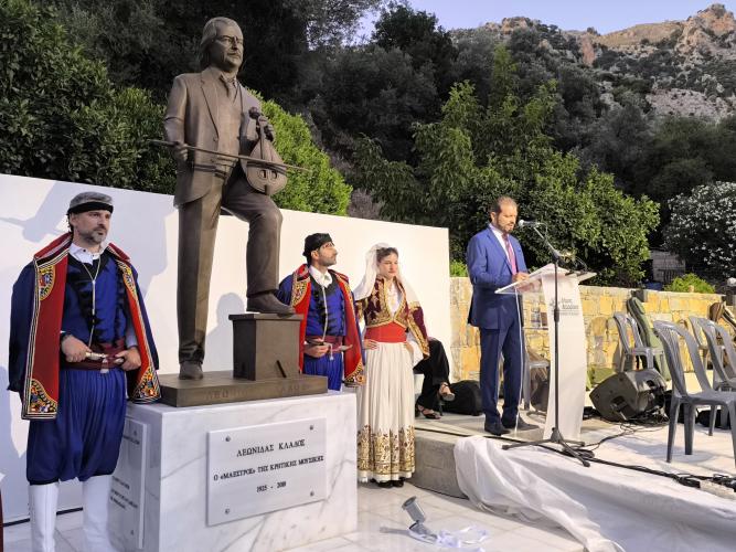 Με βαθιά συγκίνηση και αίσθημα τιμής πραγματοποιήθηκε το απόγευμα της Δευτέρας 30 Ιουνίου 2025 στα Πλατάνια Αμαρίου, στη γενέτειρά του, η τελετή αποκαλυπτηρίων του αγάλματος του «μαέστρου» της Κρητικής μουσικής παράδοσης, Λεωνίδα Κλάδου.
