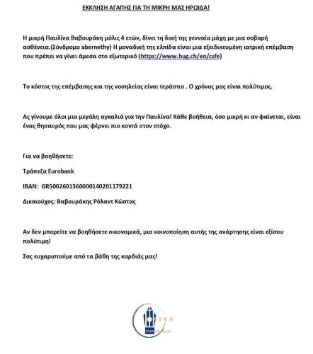 ΡΕΘΥΜΝΟ 04.07.2025 14:36Ρέθυμνο: Εκστρατεία βοήθειας για την μικρή Παυλίνα Ρέθεμνος Newsroom Facebook Twitter Copy link 0 Είναι μόλις 4 ετών και έχει ανάγκη την βοήθεια μας για να αντιμετωπίσει σοβαρή ασθένεια.Ο λόγος για την 4χρονη Παυλίνα που χρειάζεται την στήριξη όλων μας. Επισυνάπτεται σχετική ανακοίνωση για το πως μπορεί κάθε συμπολίτης και κάθε συμπολίτισσα να βοηθήσει. 0 Facebook Twitter Copy link ΣΧΕΤΙΚΑ ΑΡΘΡΑ Ρέθυμνο 13.12.2025 15:48Επανεκλογή Γιάννη Μαρινάτου στο Γενικό Συμβούλιο της ΑΔΕΔΥ Ρέθυμνο 13.12.2025 12:15Στο μπλόκο των αγροτοκτηνοτρόφων η Λαϊκή Συσπείρωση Ρεθύμνου - Κάλεσμα κλιμάκωσης και συλλαλητηρίου αλληλεγγύης Ρέθυμνο 13.12.2025 11:36Στο νοσοκομείο 71χρονος μετά από πτώση στο λιμάνι του Ρεθύμνου Ρέθυμνο 13.12.2025 11:17Ο Σεβασμιώτατος Μητροπολίτης Ρεθύμνης και Αυλοποτάμου κ. Πρόδρομος στο Χριστουγεννιάτικο Παζάρι του Συλλόγου «ΑΓΑΠΗ» 11 Δεκεμβρίου