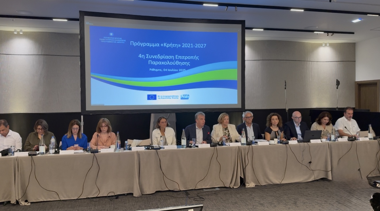 Με τη συμμετοχή θεσμικών εκπροσώπων της Αυτοδιοίκησης, των εθνικών αρχών, επιτελικών δομών του ΕΣΠΑ και της Ευρωπαϊκής Επιτροπής, πραγματοποιήθηκε σήμερα στο Ρέθυμνο η 4η Συνεδρίαση της Επιτροπής Παρακολούθησης του Περιφερειακού Προγράμματος «ΚΡΗΤΗ 2021-2027».