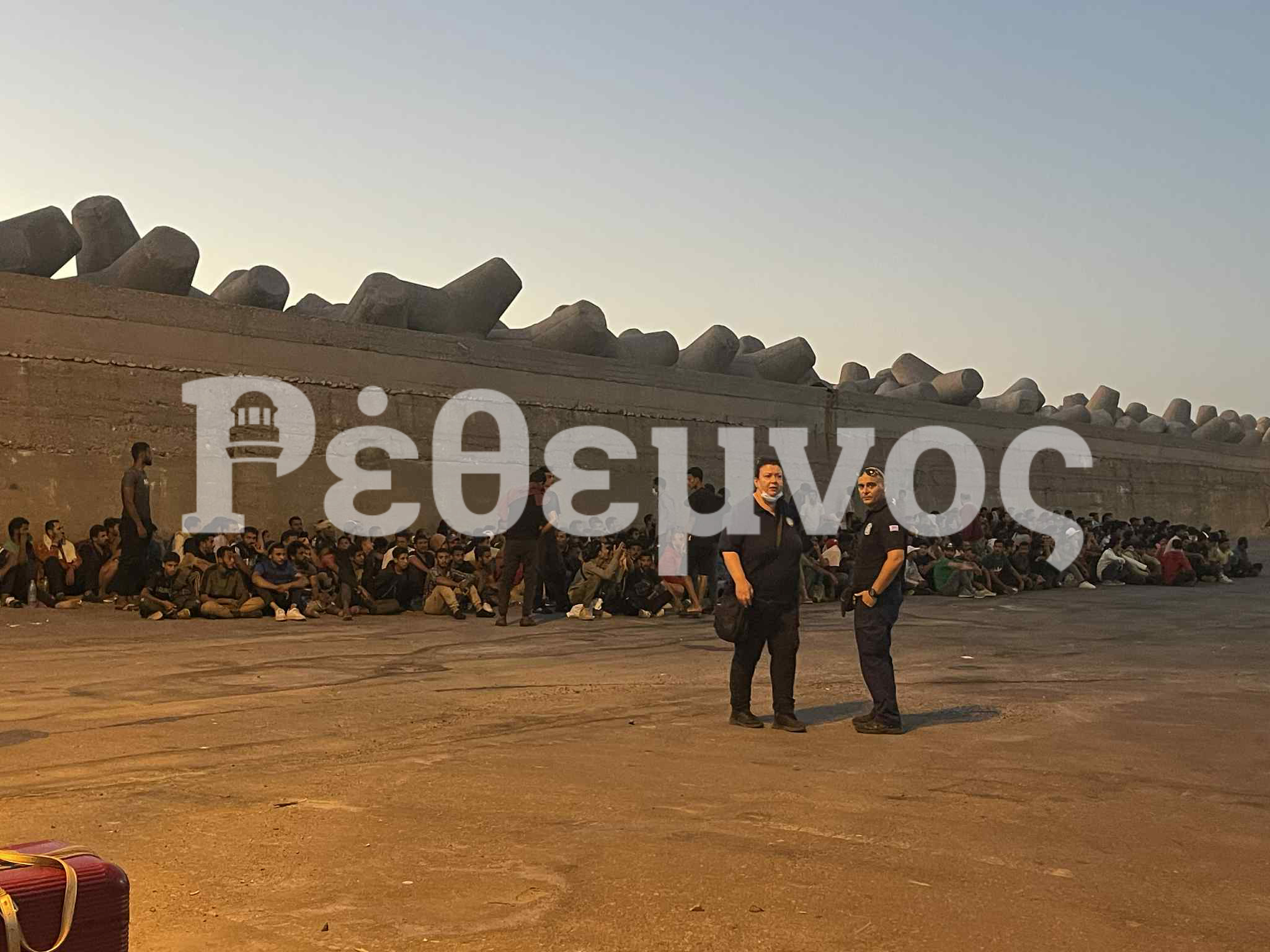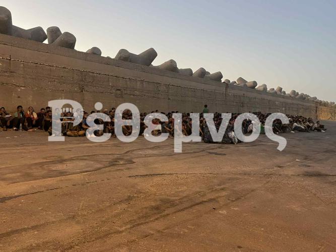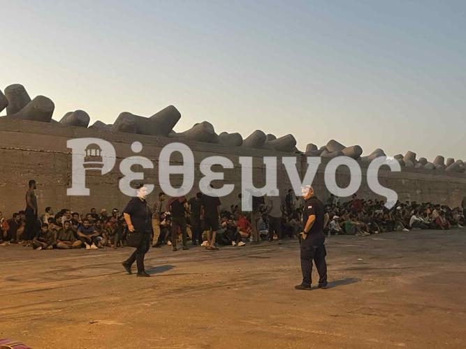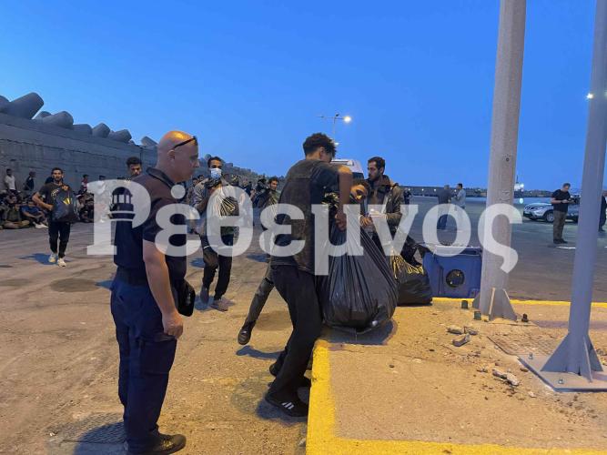 Τα λεωφορεία που τους μετέφεραν από το νότιο Ρέθυμνο τους αποβίβασαν στο λιμάνι του Ρεθύμνου όπου αναμένεται να περάσουν τη νύχτα τους υπαίθρια.
