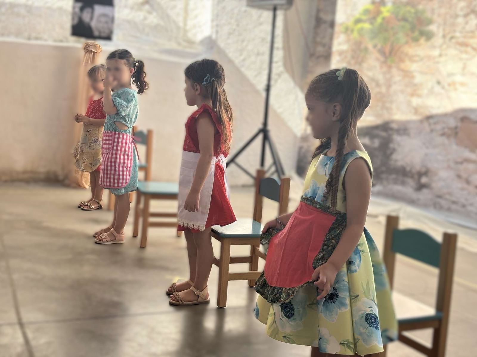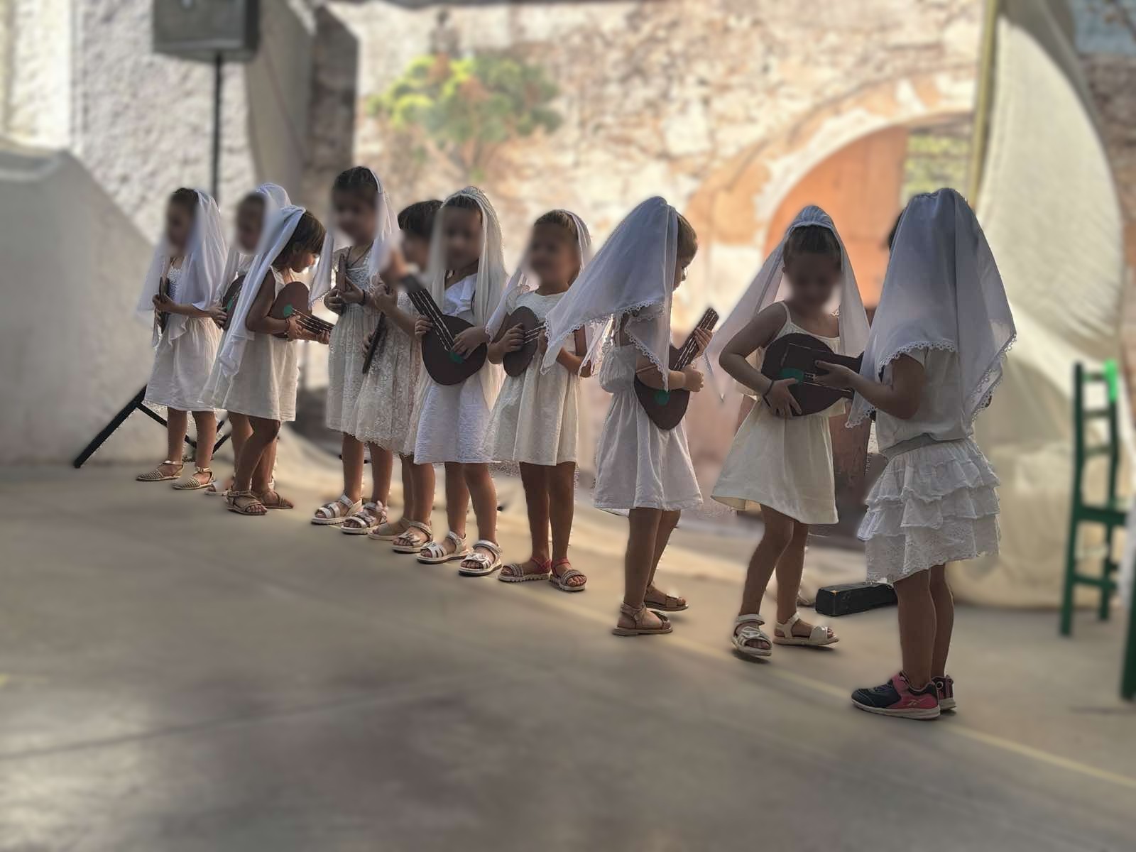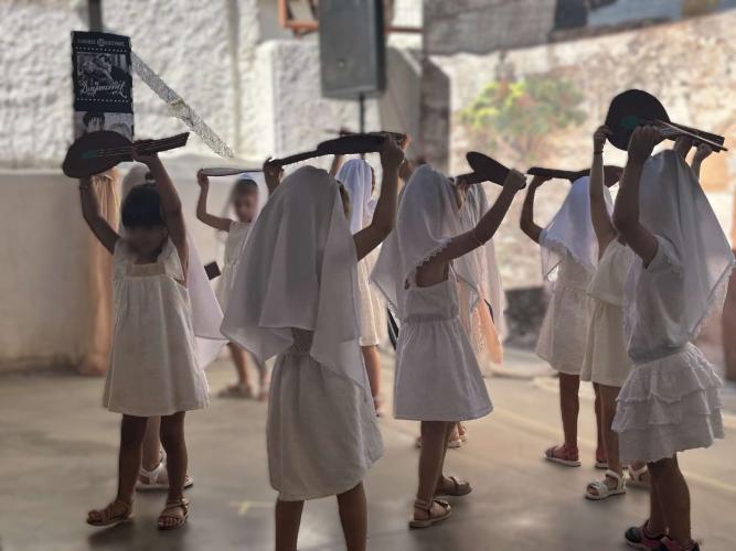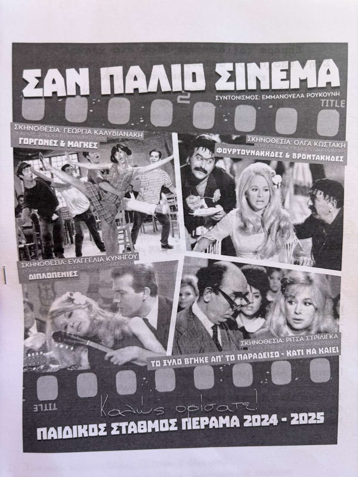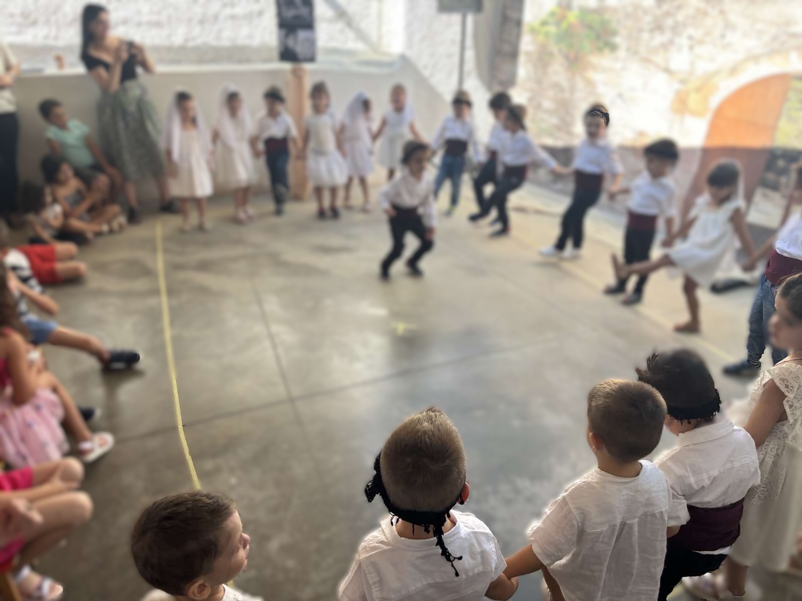 Τα παιδιά του παιδικού τμήματος μάς ταξίδεψαν στον μαγευτικό κόσμο του παλιού ελληνικού κινηματογράφου, πλημμυρίζοντας τον χώρο με γνώριμες μελωδίες, νοσταλγικές εικόνες και αυθόρμητες συγκινήσεις. Αντίστοιχα, το βρεφικό τμήμα αναβίωσε με τρυφερότητα το έθιμο του Κλήδονα, θυμίζοντάς μας πως η παράδοση και η παιδική αθωότητα παραμένουν δύο αξίες βαθιά ενωτικές και διαχρονικές.