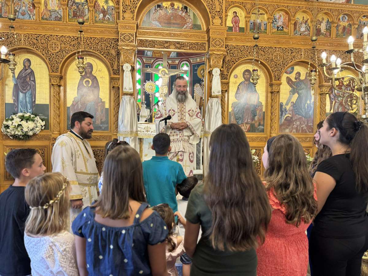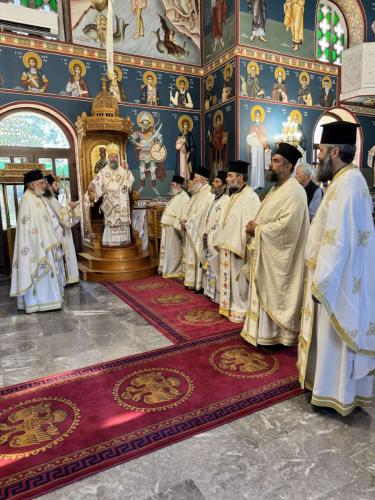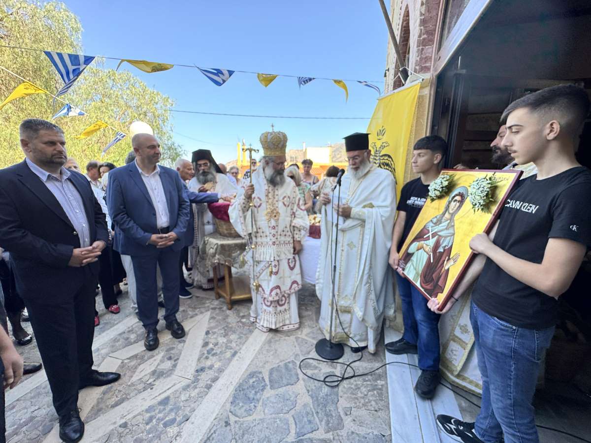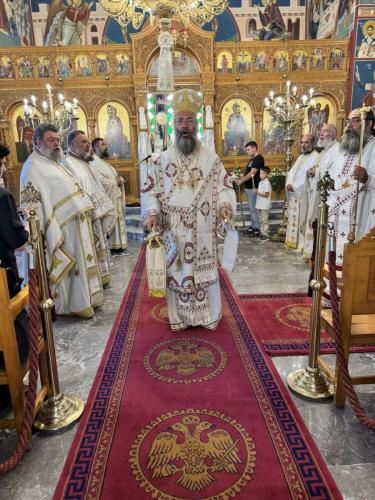 Προ της απολύσεως της Θείας Λειτουργίας, στην προσλαλιά του, ο Σεβασμιώτατος αναφέρθηκε τόσο στο βίο της Αγίας Μεγαλομάρτυρος Κυριακής, προτρέποντας όλους να έχομε τη γενναιότητα, το φρόνημα και το σθένος της Αγίας, όσο και στα θέματα της επικαιρότητας, αναφωνώντας το «Στώμεν καλώς!» του Αρχαγγέλου σε όλα τα επίπεδα της κοινωνικής ζωής και αναστροφής.
