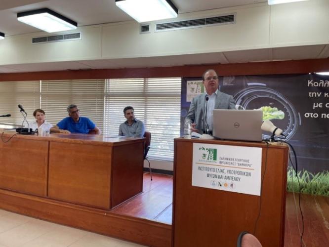 Χτες Τετάρτη 9 Ιουλίου πραγματοποιήθηκε η Ενημερωτική Εκδήλωση για τη Βέλτιστη Χρήση Νερού στη Γεωργία και στον Τουρισμό στην Κρήτη που διοργάνωσε το Ινστιτούτο Ελιάς Υποτροπικών Φυτών & Αμπέλου / ΕΛΓΟ ΔΗΜΗΤΡΑ και το ΓΕΩΤ.Ε.Ε.– Παράρτημα Κρήτης υπό την αιγίδα της Περιφέρειας Κρήτης.