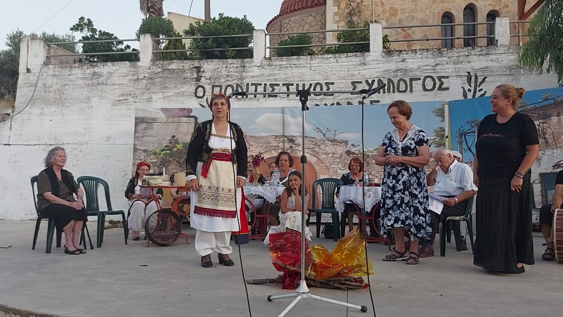 Οι αυλές πλημμύρισαν τραγούδια, μαντινάδες, ήχους λύρας και το γλυκό άρωμα από γιασεμί και βασιλικό. Οι γενιές ενώθηκαν, οι αναμνήσεις έγιναν κοινή αφήγηση και το παλιό έθιμο του Κλήδονα με τις προφητείες, τα αμίλητα νερά, τα αστεία και τους χρησμούς βρήκε τη θέση του στη σύγχρονη ζωή, αποδεικνύοντας πως τίποτα δεν χάνεται όταν υπάρχει διάθεση για δημιουργία και αγάπη για τον τόπο.