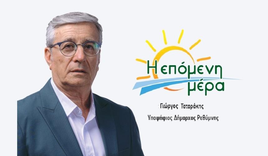 Την υποψηφιότητά του για δήμαρχος Ρεθύμνου στις αυτοδιοικητικές εκλογές του 2028 ανακοίνωσε ο πολιτικός μηχανικός Γιώργος Ταταράκης, επικεφαλής του συνδυασμού «Η επόμενη μέρα».