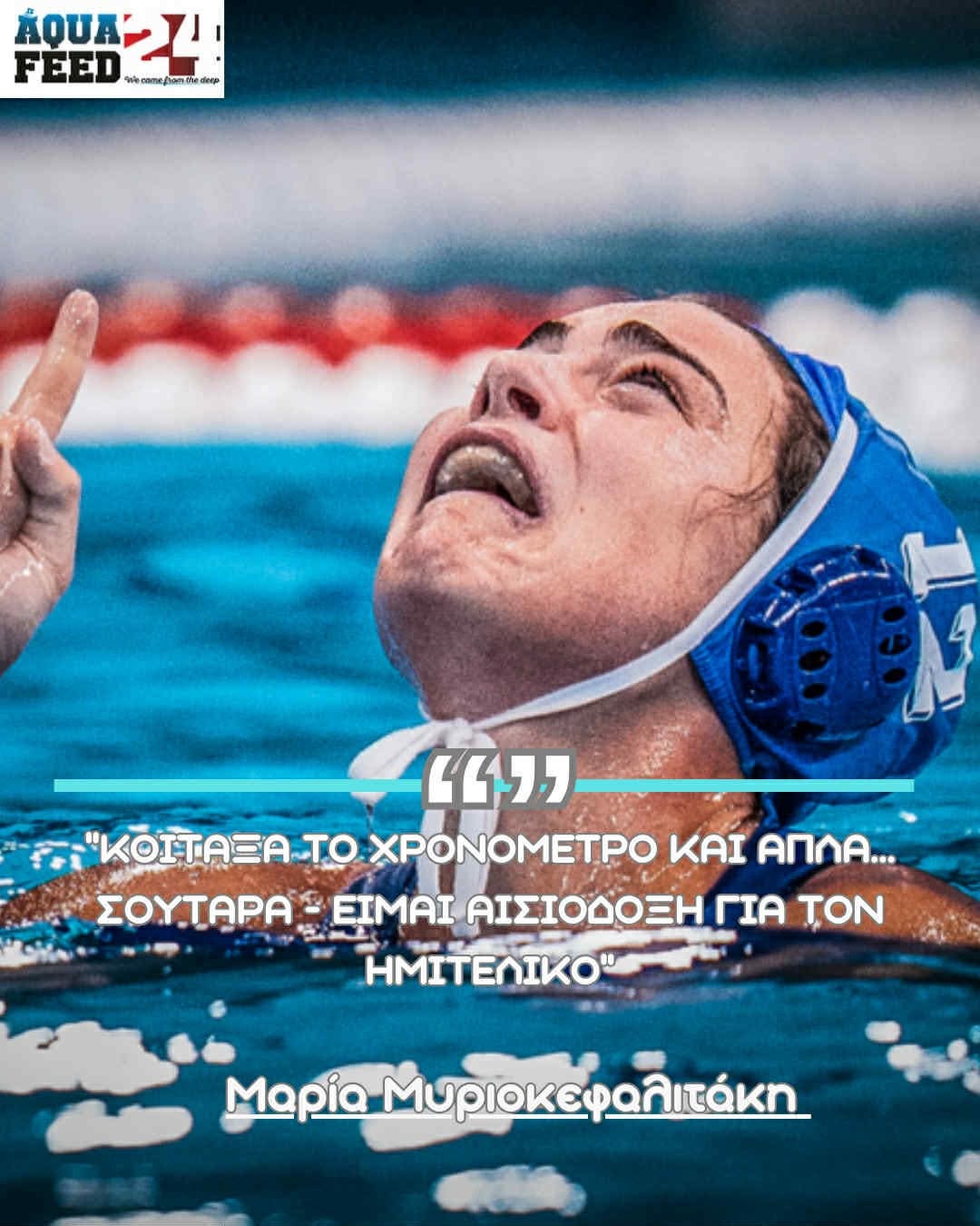 Η Αυστραλία είχε μάλιστα και την τελευταία επίθεση του αγώνα με το σκορ στο 7-7, αλλά η Ελλάδα κέρδισε μία κόντρα επίθεση και την αξιοποίησε στο έπακρο, με την Μυριοκεφαλιτάκη να σκοράρει στο κρίσιμο τετ-α-τετ και να χαρίζει την πρόκριση στην Εθνική μας Ομάδα.