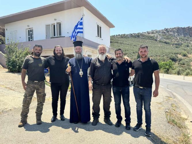 Επιστρέφοντας από τα Λιβάδια, ο Σεβασμιώτατος προσκύνησε στο Ιερό Παρεκκλήσιο Αγίας Μαρίνης Ενορίας Αγγελιανών, κτίσμα της οικογενείας του μακαριστού Ελευθερίου και της Νόρμας Κιαγιά, χαιρετίζοντας καταλλήλως την οικογένεια και δεχόμενος την καρδιακή τους φιλοξενία.