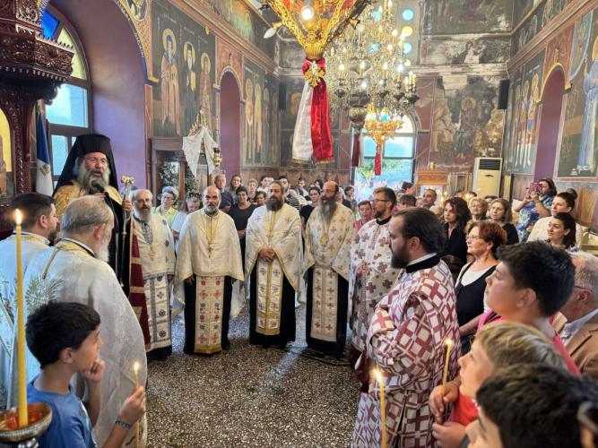 Το πρωί της κυριωνύμου ημέρας, Πέμπτης, 17ης Ιουλίου 2025, ο Σεβασμιώτατος Ποιμενάρχης μας κ. Πρόδρομος χοροστάτησε κατά τον Όρθρο και τέλεσε Αρχιερατική Θεία Λειτουργία στον πανηγυρίζοντα Ιερό Ναό Αγίας Μαρίνης Λιβαδίων Μυλοποτάμου.
