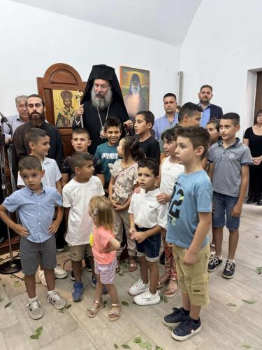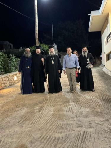 Ο Σεβασμιώτατος Ποιμενάρχης μας κ. Πρόδρομος συνεχάρη ιδιαίτερα τους κτήτορες του Ναού, τον π. Γαβριήλ και την οικογένειά του, και ευχήθηκε ο Άγιος ουρανοφάντωρ Βασίλειος ο Μέγας να σκέπει και να ευλογεί τη ζωή όλων μας και να μας οδηγεί στην αληθινή φιλοθεΐα και φιλανθρωπία, όπως εκείνος τα εβίωσε στον υπερθετικό τους βαθμό.