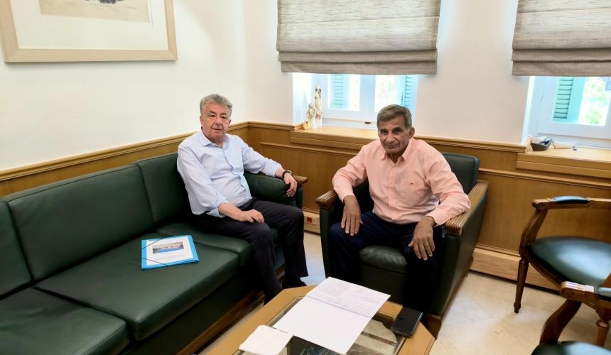Στο πλαίσιο του αναπτυξιακού σχεδιασμού και της παρακολούθησης της πορείας υλοποίησης των έργων σε όλη την Κρήτη, ο Περιφερειάρχης Κρήτης Σταύρος Αρναουτάκης συναντήθηκε σήμερα με τον Δήμαρχο Αμαρίου, Παντελή Μουρτζανό.