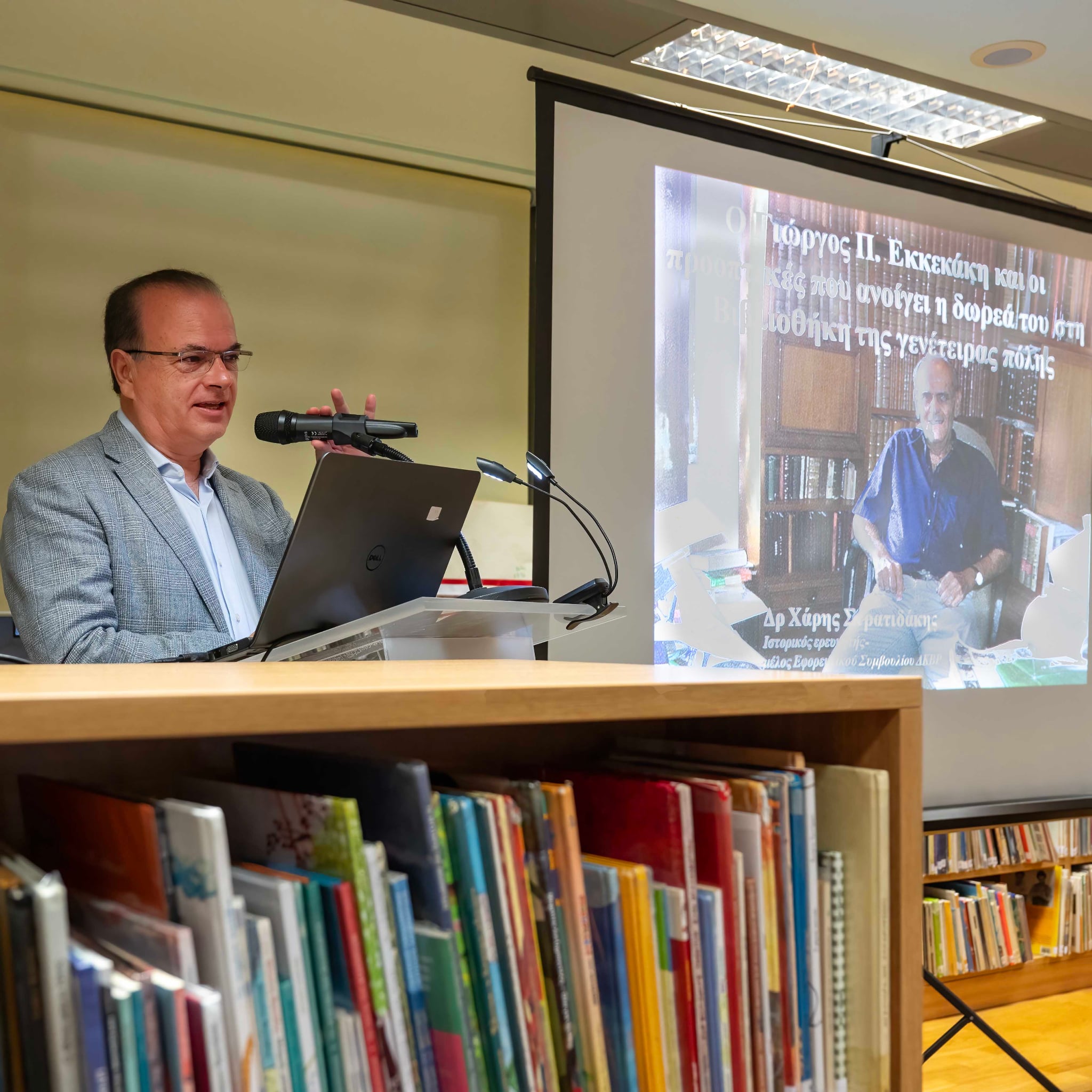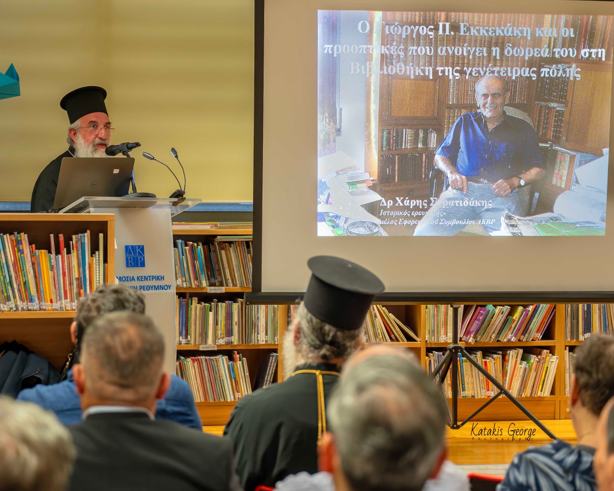 Η εκδήλωση που διοργανώθηκε από την Δημόσια Κεντρική Βιβλιοθήκη Ρεθύμνου και την Αντιπεριφέρεια Ρεθύμνου - Περιφέρεια Κρήτης το απόγευμα της Τετάρτης στους χώρους του ιδρύματος και κατά τη διάρκεια της παρουσιάστηκε το τελευταίο πόνημα του τιμώμενου με τίτλο "Ρεθεμνιώτες που πέρασαν αφήνοντας ίχνη και περαστικοί που έμειναν στην ιστορία του τόπου". Παράλληλα έγινε και η παρουσίαση του τμήματος της βιβλιοθήκης που φιλοξενεί το συλλεκτικό πλούτο των βιβλίων της οικογένειας Εκκεκάκη που δωρίσθηκαν στην βιβλιοθήκη και βρίσκονται πλέον στην διάθεση των ερευνητών και των επιστημόνων.