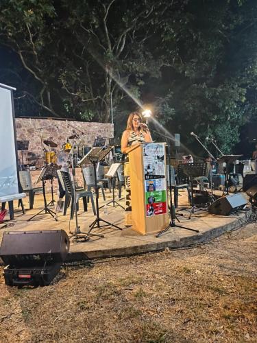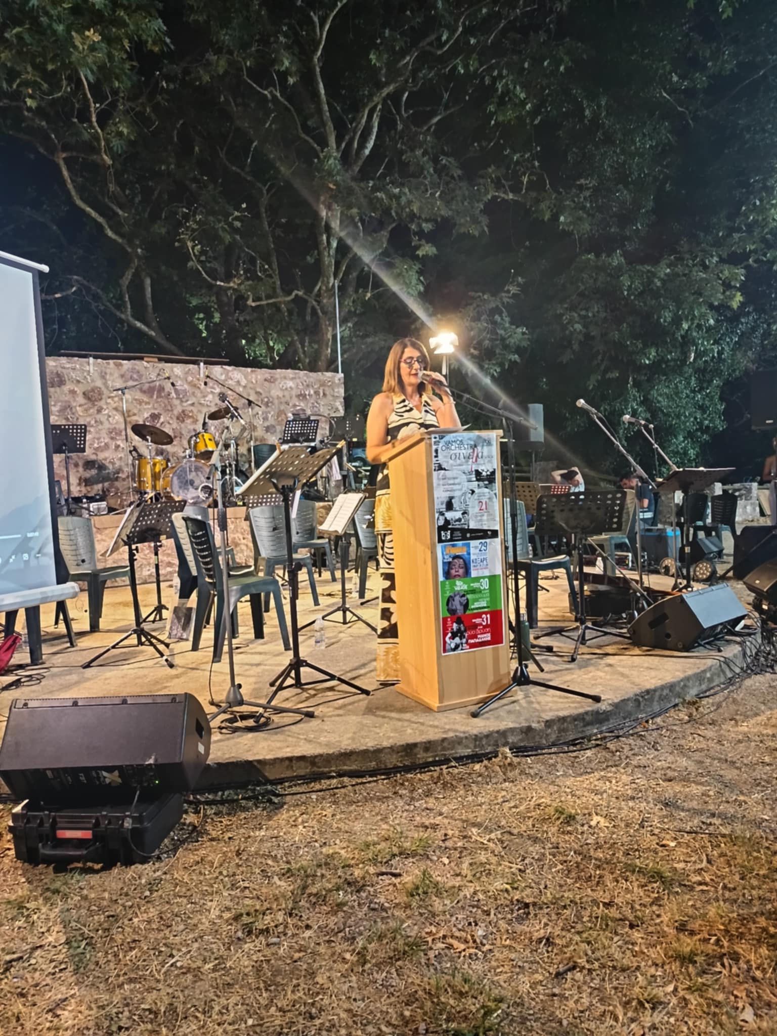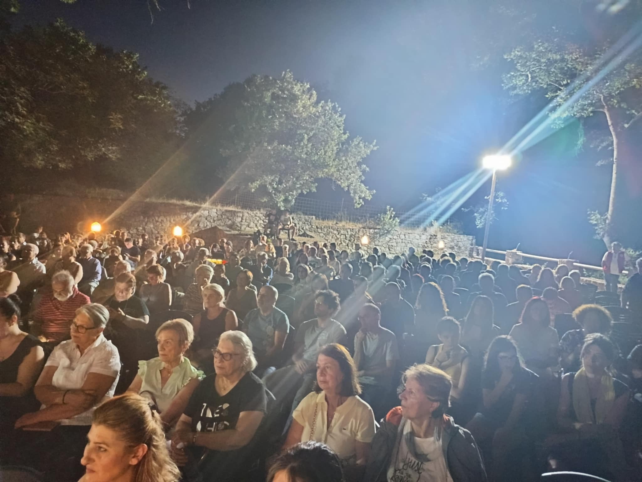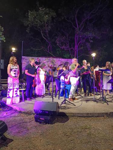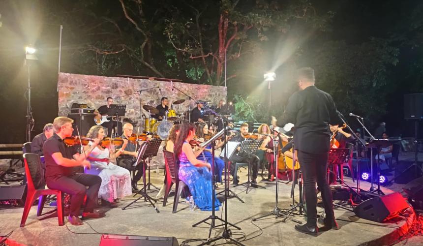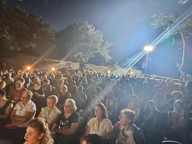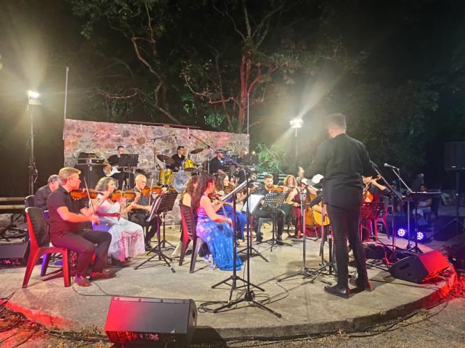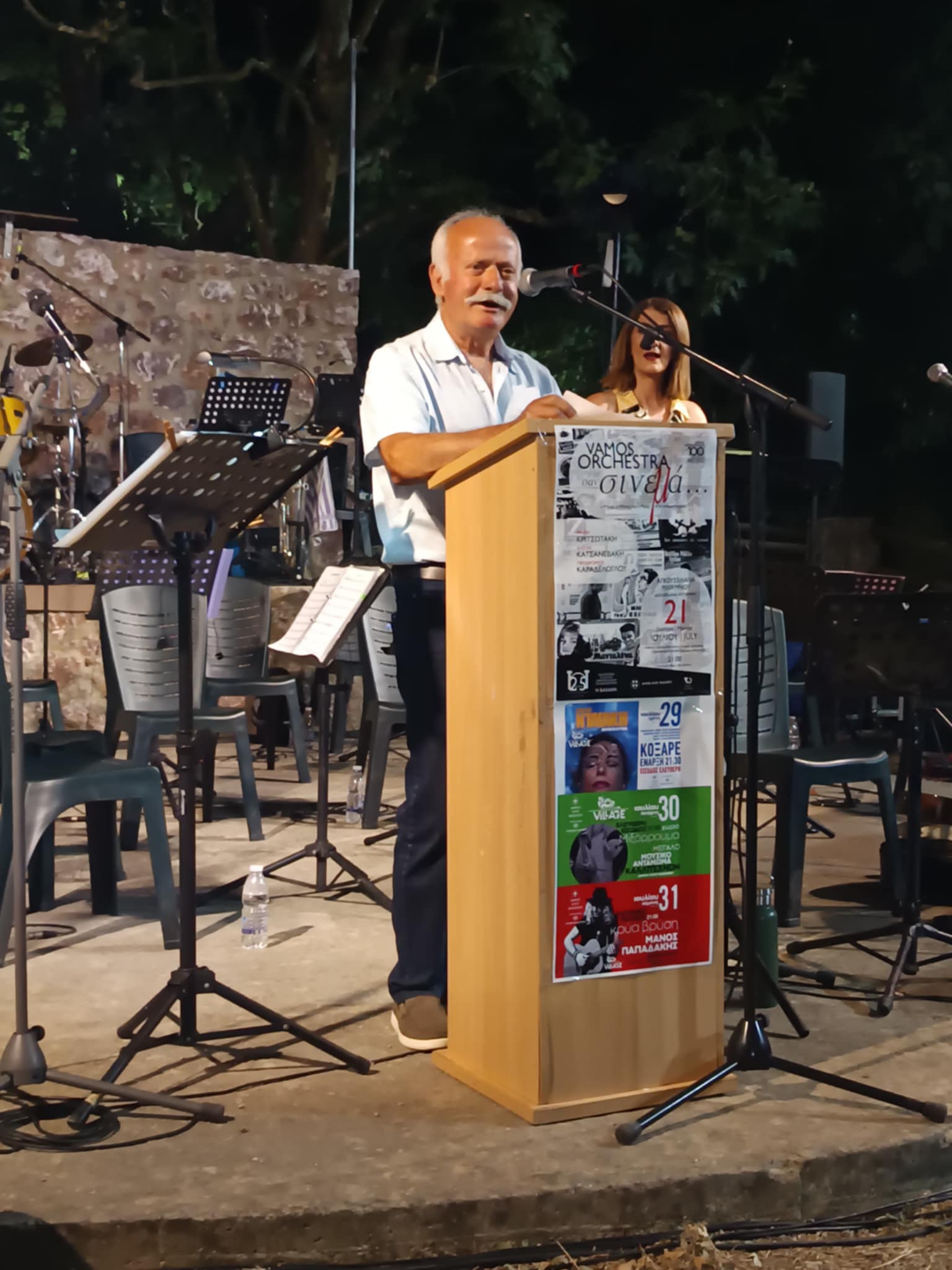Μέσα σε μια ατμόσφαιρα σχεδόν μαγική όπου το πράσινο αγκάλιαζε το φως των αστεριών, οι ερμηνευτές της ορχήστρας «VAMOS ORCHESTRA σαν σινεμά» ,ταξίδεψαν το κοινό με τραγούδια από τον κινηματογράφο, εμπνευσμένα από την αστείρευτη δημιουργικότητα του Θεοδωράκη, ενώ απέδωσαν και γνωστά έργα του Μάνου Χατζιδάκι και του Μίμη Πλέσσα, δημιουργώντας ένα μουσικό μωσαϊκό γεμάτο μνήμες και συναισθήματα.