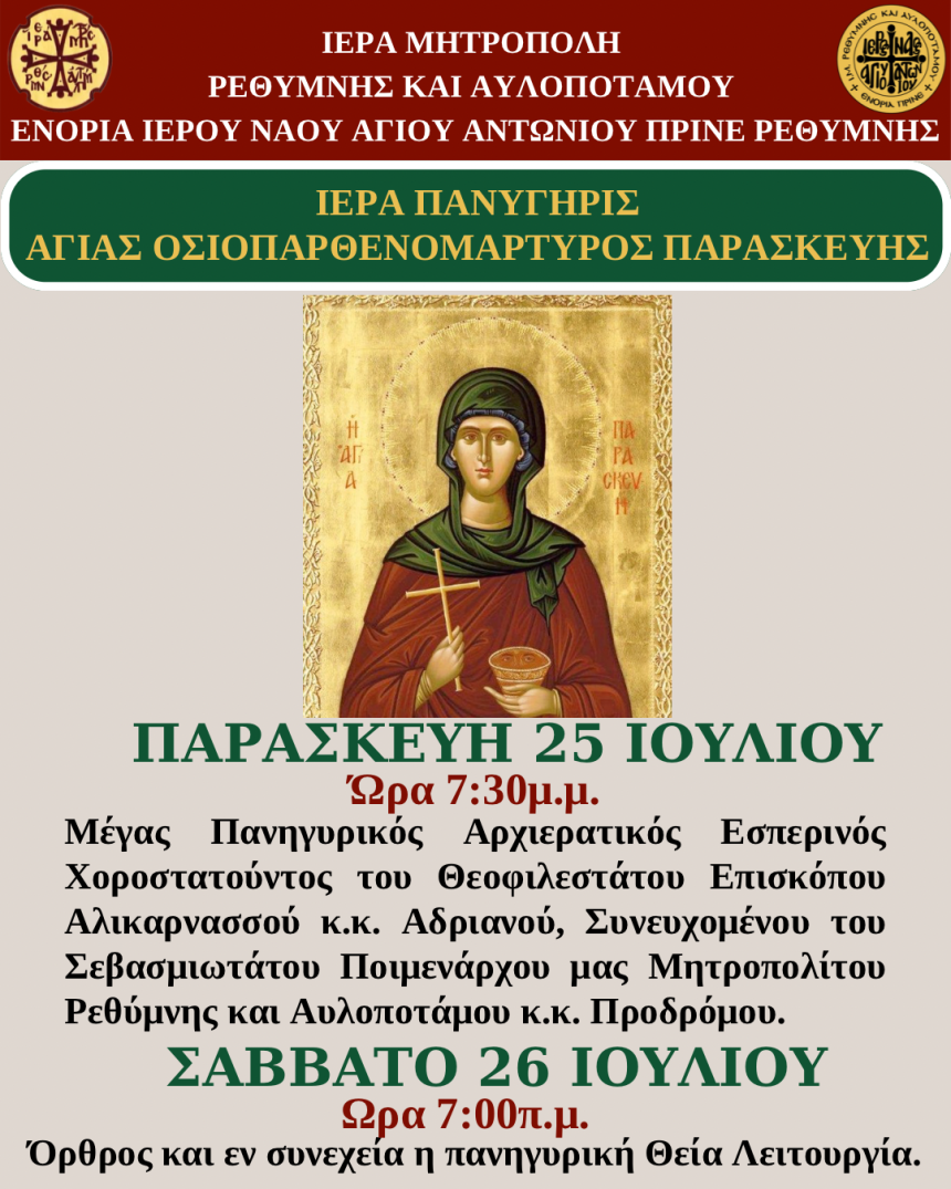 ΠΑΡΑΣΚΕΥΗ 25 ΙΟΥΛΙΟΥ