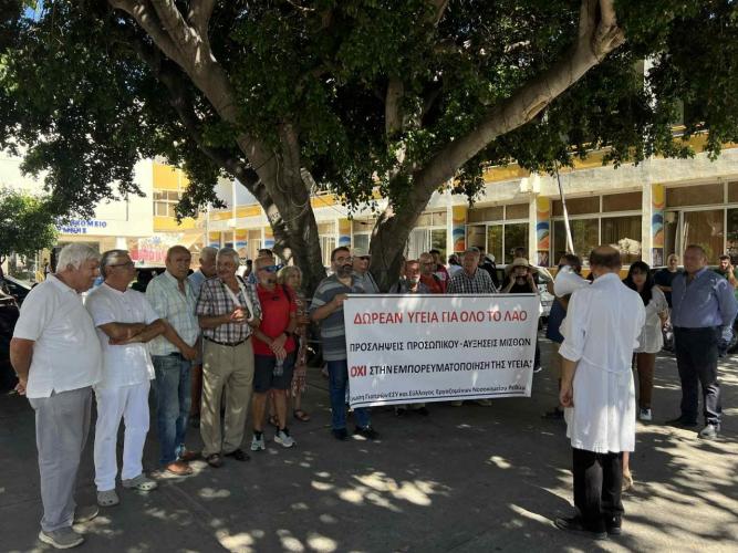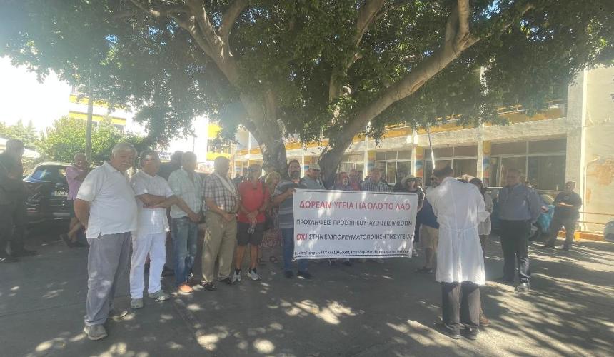 Σε μια ακόμη κινητοποίηση προχώρησαν σήμερα οι γιατροί και οι εργαζόμενοι του Νοσοκομείου Ρεθύμνου, πραγματοποιώντας στάση εργασίας, με σκοπό να αναδείξουν την οριακή – όπως τη χαρακτηρίζουν – κατάσταση στην οποία έχει περιέλθει το μοναδικό δημόσιο νοσηλευτικό ίδρυμα του νομού. Παράλληλα, στην κινητοποίηση έδωσαν δυναμικό «παρών» και συνδικαλιστικοί φορείς της περιοχής, μεταξύ αυτών το Ν.Τ. ΑΔΕΔΥ Ρεθύμνου, το Εργατικό Κέντρο και ο Ιατρικός Σύλλογος, κατόπιν καλέσματος της Ένωσης Γιατρών ΕΣΥ Ρεθύμνου.
