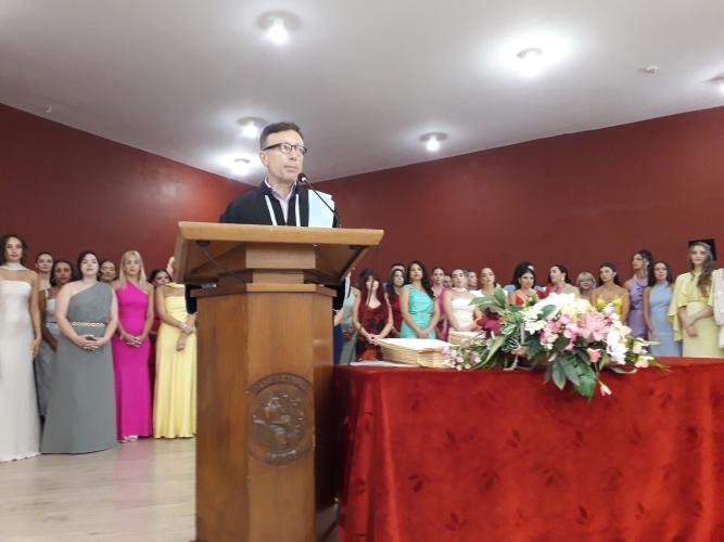 Στις ομιλίες του σε όλες τις ορκωμοσίες ο Κοσμήτορας της Σχολής τόνισε την ανθρωπιστική προοπτική που θεωρεί ότι οι παιδαγωγικές σπουδές διαθέτουν, αφού έχουν ως επίκεντρό τους τη γνωστική, την ηθική και τη συναισθηματική συγκρότηση και ανάπτυξη των νέων ανθρώπων. Τόνισε, μάλιστα, τη σημασία μιας τέτοιας προοπτικής για την ταυτότητα της εκπαίδευσης και τη σημασία της για τους ορίζοντες που αυτή διανοίγει για τον άνθρωπο και την κοινωνία. Ανέφερε, μάλιστα, χαρακτηριστικά ότι «ο άνθρωπος και η ανθρώπινη συνθήκη αποτελούν το μέτρο της γνώσης, αλλά και το επίκεντρο της εκπαίδευσης και των εκπαιδευτικών. Η ανθρωπιστική παιδεία που φιλοδοξούμε να προσφέρουμε στους φοιτητές μας είναι ένα πολύτιμος αρωγός στην προσπάθειά μας να γνωρίσουμε και να αγκαλιάσουμε μέσα από τη γνώση τον άνθρωπο και τα προβλήματά του».