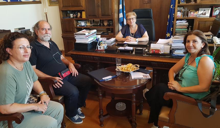 Συνάντηση με την Αντιπεριφερειάρχη Π.Ε. Ρεθύμνης, κα Μαρία Λιονή, είχαν χτες ο Υπεύθυνος του Κ.Ε.ΠΕ.Α., κ. Κωνσταντίνος Τρικάλης, η κα Βιολέττα Παπαδάκη, μέλος της Παιδαγωγικής Ομάδας, καθώς και η κα Ραλλία Γαληνού, εκπρόσωπος του Πολιτιστικού Συλλόγου Μέρωνα αναφορικά με τις δράσεις και τη στήριξη του νεοϊδρυθέντος Κέντρου Εκπαίδευσης για το Περιβάλλον και την Αειφορία (Κ.Ε.ΠΕ.Α.) Αγίου Βασιλείου Ρεθύμνου.
