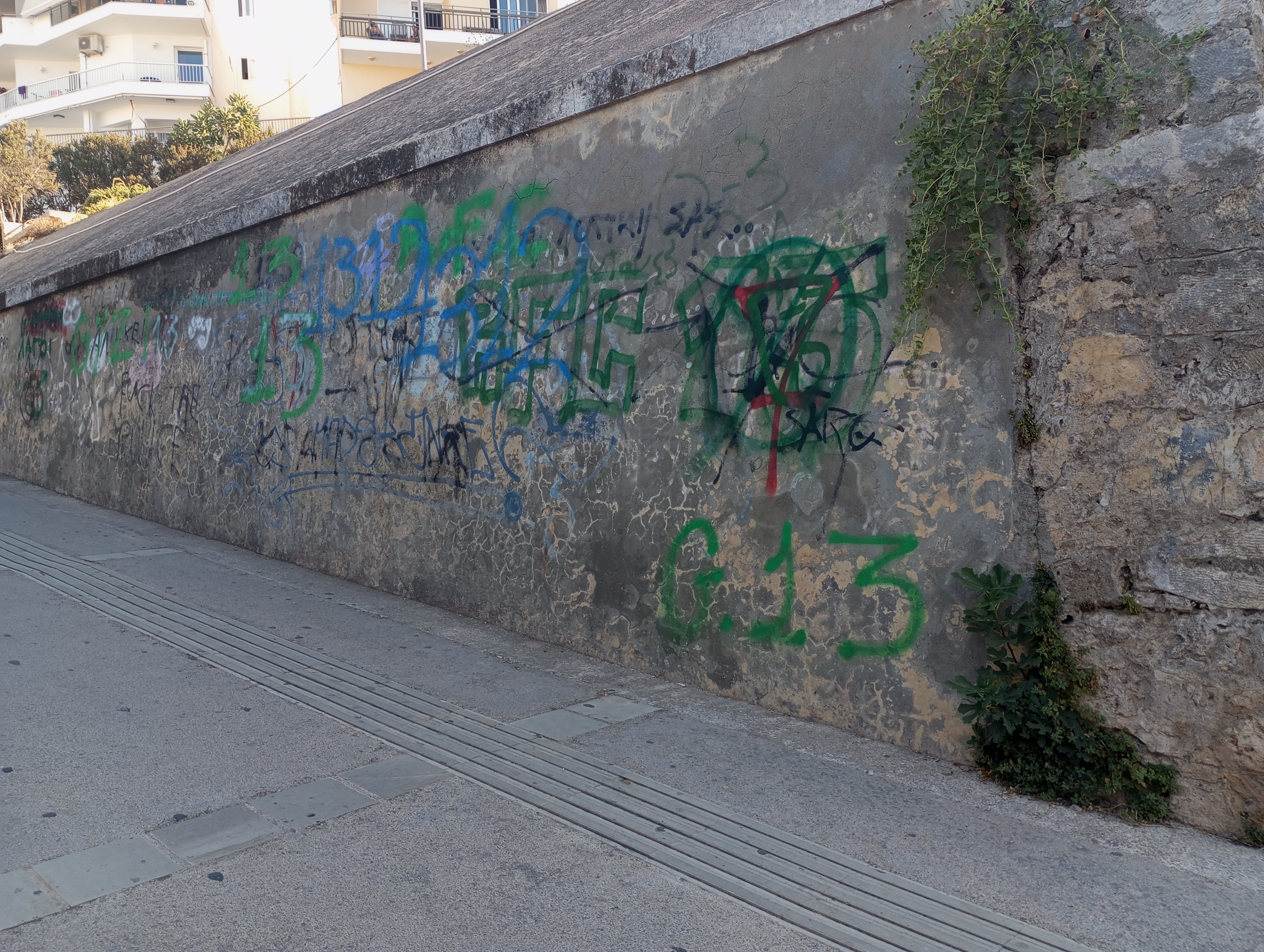 Το τέμενος Καρά Μουσά Πασά στον Άγνωστο Στρατιώτη, το Τέμενος του Βελή Πασά στον Μασταμπά όπου σήμερα φιλοξενείται μια θαυμάσια παλαιοντολογική συλλογή, οι οθωμανικές δεξαμενές ακριβώς δίπλα αλλά και πολλά άλλα μνημεία της πόλης του Ρεθύμνου είναι γεμάτα από γκράφιτι.