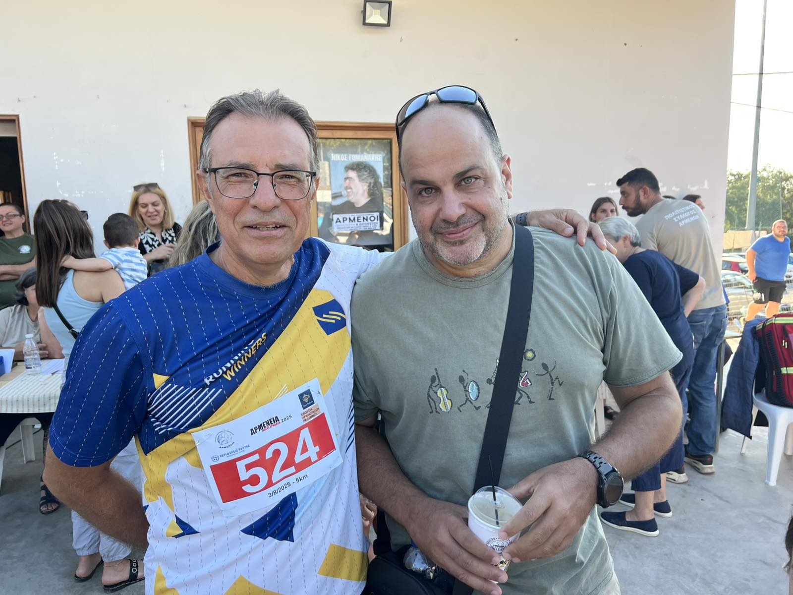 Βραβεία πήραν και οι μεγαλύτεροι ηλικιακά συμμετέχοντες στον αγώνα των 12 χλμ., ο κ. Δημήτρης Μπαρίκος και η κα Ράνια Τελειοπούλου και τα βραβεία απένειμαν ο καθηγητής Πανεπιστημίου Χρήστος Λιονής και ο πρόεδρος της δημοτικής κοινότητας Αρμένων Γιώργος Κολυβάκης.