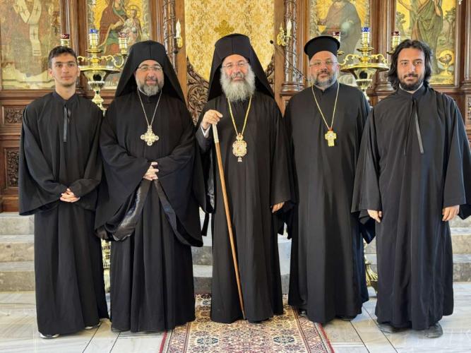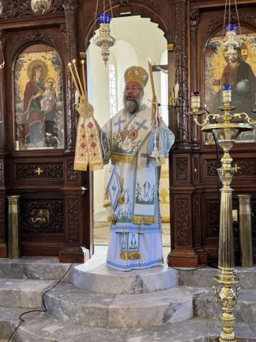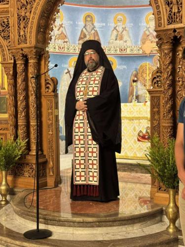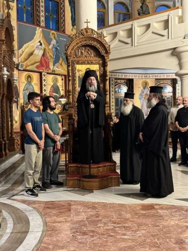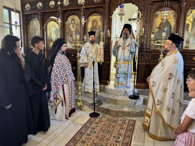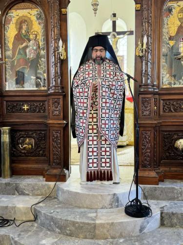 Τους ύμνους της Θείας Λειτουργίας απέδωσαν οι Ιεροψάλτες του Ναού και οι εκ Κωνσταντινουπόλεως νέοι Χρυσόστομος και Γεώργιος, από την Ενορία, στην οποία διακονεί, με την Ευχή του Παναγιωτάτου Οικουμενικού μας Πατριάρχου κ.κ. ΒΑΡΘΟΛΟΜΑΙΟΥ, ο Πανοσιολ. Μέγας Ιεροκήρυξ κ. Πανάρετος, ο οποίος, κατά προτροπήν του Σεβασμιωτάτου, κήρυξε τον Θείο λόγο, μεταφέροντας και τις Ευχές του Παναγιωτάτου Οικουμενικού Πατριάρχου προς όλους.