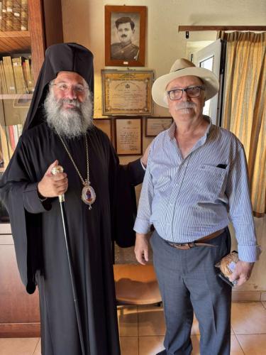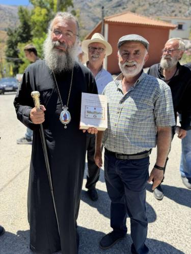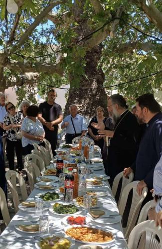 Στη συνέχεια, ο Σεβασμιώτατος, συνοδευόμενος από τους κατοίκους του χωριού, θαύμασε τα εκθέματα του Μουσείου και μετέβη προσκυνηματικά στο Κοιμητήριο των Αλώνων. Παρακάθησε δε και σε πλούσια νηστήσιμη τράπεζα, στην κεντρική πλατεία του χωριού, δίπλα από τον Ιερό Ναό του Αγίου Ονουφρίου.