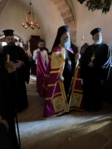 Το πρωί της κυριωνύμου ημέρας, Τετάρτης, 6ης Αυγούστου 2025, ο Σεβασμιώτατος Ποιμενάρχης μας κ. Πρόδρομος χοροστάτησε κατά τον Όρθρο και στη συνέχεια τέλεσε Αρχιερατική Θεία Λειτουργία, στην πανηγυρίζουσα Ιερά Πατριαρχική και Σταυροπηγιακή Μονή Μεταμορφώσεως του Σωτήρος Χριστού Χαλέπας Μυλοποτάμου, συμπαραστατούμενος υπό του Καθηγουμένου της Μονής, Πανοσιολ. Αρχιμ. Πορφυρίου Αουάντ, υπό κληρικών της Ιεράς Μητροπόλεως Ρεθύμνης και Αυλοποτάμου, καθώς και υπό του Αιδεσιμολ. Πρωτ. Τίτου Ασημινάκη, κληρικού της Ιεράς Αρχιεπισκοπής Κρήτης, ο οποίος συνόδευσε όμιλο προσκυνητών από το Ηράκλειο.