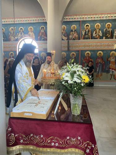 Ιδιαίτερα ο Σεβασμιώτατος μνημόνευσε ότι προ ενός έτους, κατ’ αυτές τις ημέρες, τέλεσε τα Ιερά Εγκαίνια του Παρεκκλησίου του Αγίου Κοσμά του Αιτωλού, εκφράζοντας τη χαρά του για την προσφορά και τη μαρτυρία της Ιεράς Μονής Αγίας Αναστασίας της Ρωμαίας και του Καθηγουμένου της Πανοσιολ. Αρχιμ. Βασιλείου στη ζωή της Τοπικής μας Εκκλησίας.