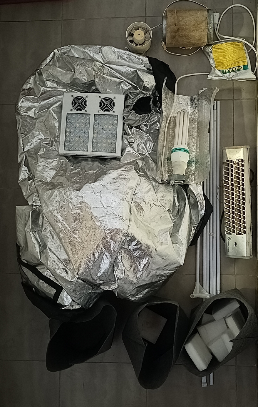 Επίσης κατασχέθηκαν πλήρης εξοπλισμός καλλιέργειας κάνναβης εσωτερικού χώρου και Ι.Χ.Ε. αυτοκίνητο