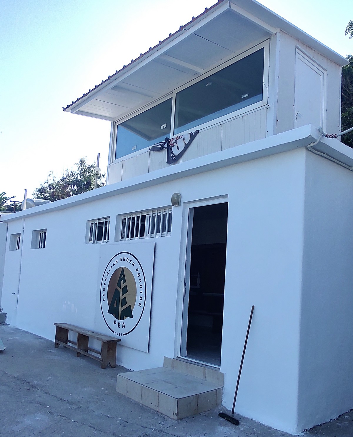 Επίσης στο υφιστάμενο κτίριο των αποδυτηρίων έγιναν εργασίες επισκευής και συντήρησης όπως: αποκατάσταση επιφάνειας πλακών και οροφών, υγρομόνωση, επισκευές και αντικατάσταση κουφωμάτων αλουμινίου καθώς και χωματουργικές εργασίες.