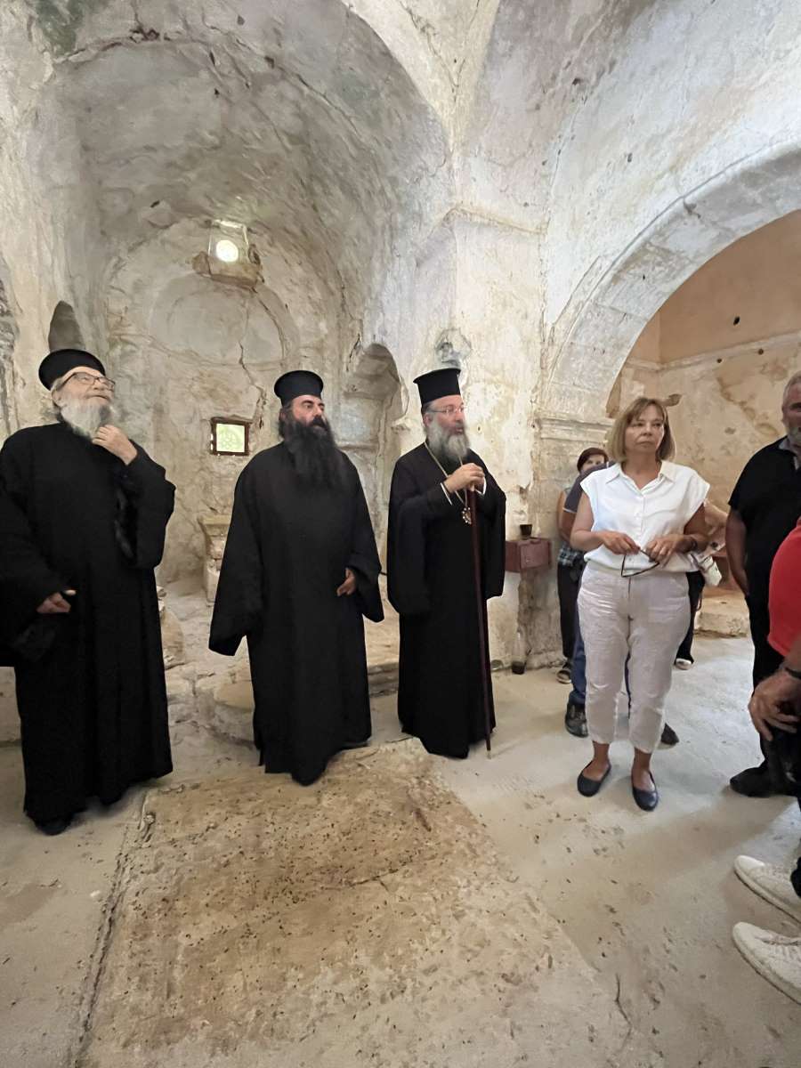 Ο Σεβασμιώτατος Ποιμενάρχης κ. Πρόδρομος ευχαρίστησε θερμά την Προϊσταμένη της Εφορείας Αρχαιοτήτων Ρεθύμνου κ. Ελένη Παπαδοπούλου και τους συνεργάτες της για την επιτόπια παρουσία τους και για την πολύτιμη συμβολή τους στην περαιτέρω προώθηση του σπουδαίου αυτού έργου, ενώ συνεχάρη τον Εφημέριο και το Εκκλησιαστικό Συμβούλιο της Ενορίας και όλους τους φορείς και κατοίκους της Αρχαίας Ελεύθερνας για το ενδιαφέρον και τη μέριμνά τους για την αποκατάσταση του ιστορικού αυτού Ιερού Ναού.