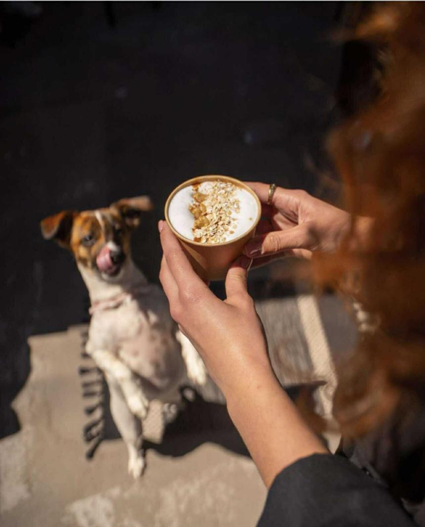 Η καινοτομία, ωστόσο, ακούει στο όνομα «puppychino» – ένα ρόφημα για σκύλους με βάση βρώμη, κανέλα, φιστικοβούτυρο και μπανάνα, το οποίο είναι ασφαλές και θρεπτικό. Παράλληλα, στον χώρο διατίθενται μασητικά παιχνίδια, αξεσουάρ και πρακτικά αντικείμενα όπως ειδικά κρεμαστά για σακούλες απορριμμάτων που χρειάζονται οι φιλόζωοι κατά τη βόλτα των τετράποδων φίλων τους .