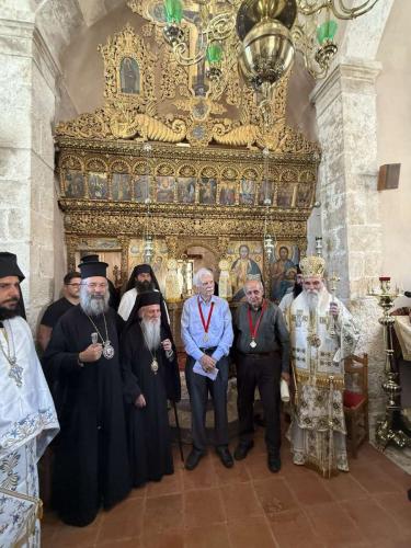 Κατά τη Θεία Λειτουργία επιδόθηκε η Ανωτάτη Τιμητική Διάκριση της Εκκλησίας Κρήτης, ο Σταυρός των Αγίων Αποστόλων Παύλου και Τίτου, σε δύο εκλεκτούς γόνους της Επαρχίας Αμαρίου που διέπρεψαν στο χώρο της επιστήμης, τον Ομότιμο Καθηγητή της Ορθοπεδικής κ. Ηλία Λαμπίρη και τον Ομότιμο Καθηγητή Αρχαιολογίας και τέως Έφορο Αρχαιοτήτων κ. Ιωάννη Βολανάκη.