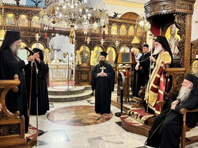 Προ της απολύσεως του Εσπερινού, ο Σεβασμιώτατος κ. Πρόδρομος, εκ μέρους και του Θεοφιλεστάτου, εξέφρασε θερμές ευχές και ευχαριστίες προς τον εορτάζοντα άγιο Λάμπης κ. Ειρηναίο, διερμηνεύοντας την ευγνωμοσύνη και τον σεβασμό όλων.