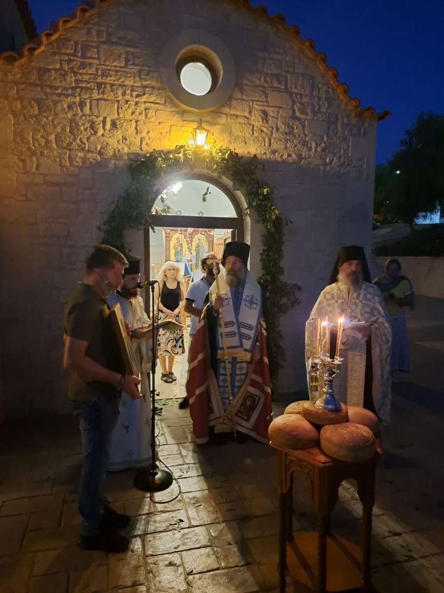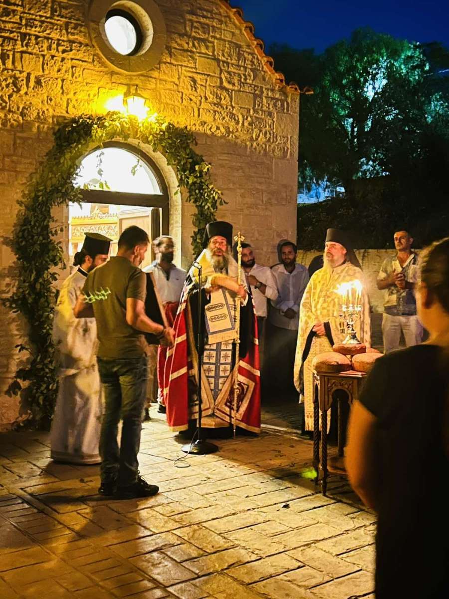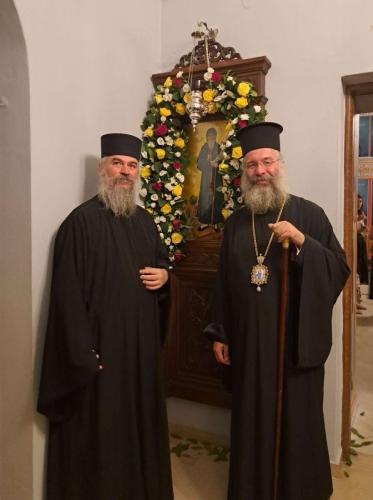 Κατά τον Πανηγυρικό Εσπερινό της εορτής, το απόγευμα του Σαββάτου, 23ης Αυγούστου 2025, χοροστάτησε ο Σεβασμιώτατος Μητροπολίτης Ρεθύμνης και Αυλοποτάμου κ. Πρόδρομος, ο οποίος, προ της απολύσεως του Εσπερινού, αναφέρθηκε στο βίο και τα πάντοτε επίκαιρα μηνύματα του Αγίου Κοσμά του Αιτωλού και του συνεορταζομένου, επί τη ανακομιδή του ιερού λειψάνου του, Αγίου Διονυσίου, Αρχιεπισκόπου Αιγίνης, του εν Ζακύνθω, προτρέποντας τους ανθρώπους να αφουγκραζόμαστε πάντοτε τα διαχρονικά μηνύματα των Αγίων.