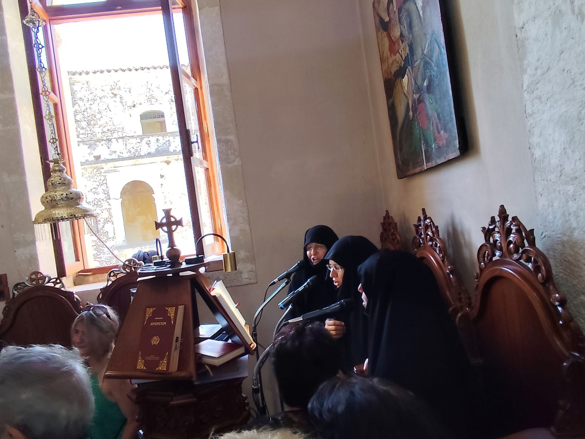 Το απόγευμα της Παρασκευής, 22 Αυγούστου τελέστηκε ο πανηγυρικός εσπερινός στην Ιερά Μονή Αγίων Ραφαήλ, Νικολάου και Ειρήνης Σπηλίου, όπου χοροστάτησε ο Θεοφιλέστατος Επίσκοπος Κνωσού κ. Μεθόδιος, συμπροσευχομένου του εορτάζοντος Ποιμενάρχου κ. Ειρηναίου και του Σεβ. Μητροπολίτου Ρεθύμνης και Αυλοποτάμου κ. Προδρόμου.