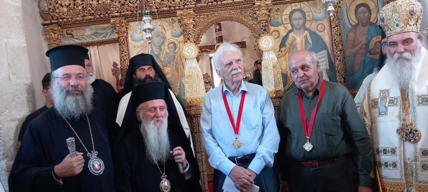 Ακολούθησε απονομή της Ανωτάτης τιμητικής διακρίσεως της Ιεράς Επαρχιακής Συνόδου της Εκκλησίας Κρήτης σε δύο εξέχουσες προσωπικότητες του Αμαρίου, στον κ. Ηλία Λαμπρίρη, ομότιμο Καθηγητή Ορθοπεδικής, και στον κ. Ιωάννη Βολανάκη, επίτιμο Έφορα Αρχαιοτήτων, οι οποίοι εξέφρασαν την ευγνωμοσύνη τους προς τον Σεβ. Μητροπολίτη Λάμπης, Συβρίτου και Σφακίων κ. Ειρηναίο και, ακολούθως, ο Σεβ. Μητροπολίτης Ρεθύμνης και Αυλοποτάμου κ. Πρόδρομος, χαιρέτισε το γεγονός σημειώνοντας: «Τιμή στην Εκκλησία και τον τόπο ο σεβαστός Γέροντας Μητροπολίτης Λάμπης, Συβρίτου και Σφακίων κ. Ειρηναίος. Πολύτιμη η εμπειρία του για όλους μας, πολύτιμες και οι προσευχές του, τις οποίες εκζητούμε.», ευχόμενος έτη πολλά, συγχαίροντας τους τιμωμένους.