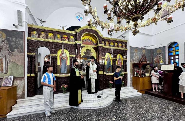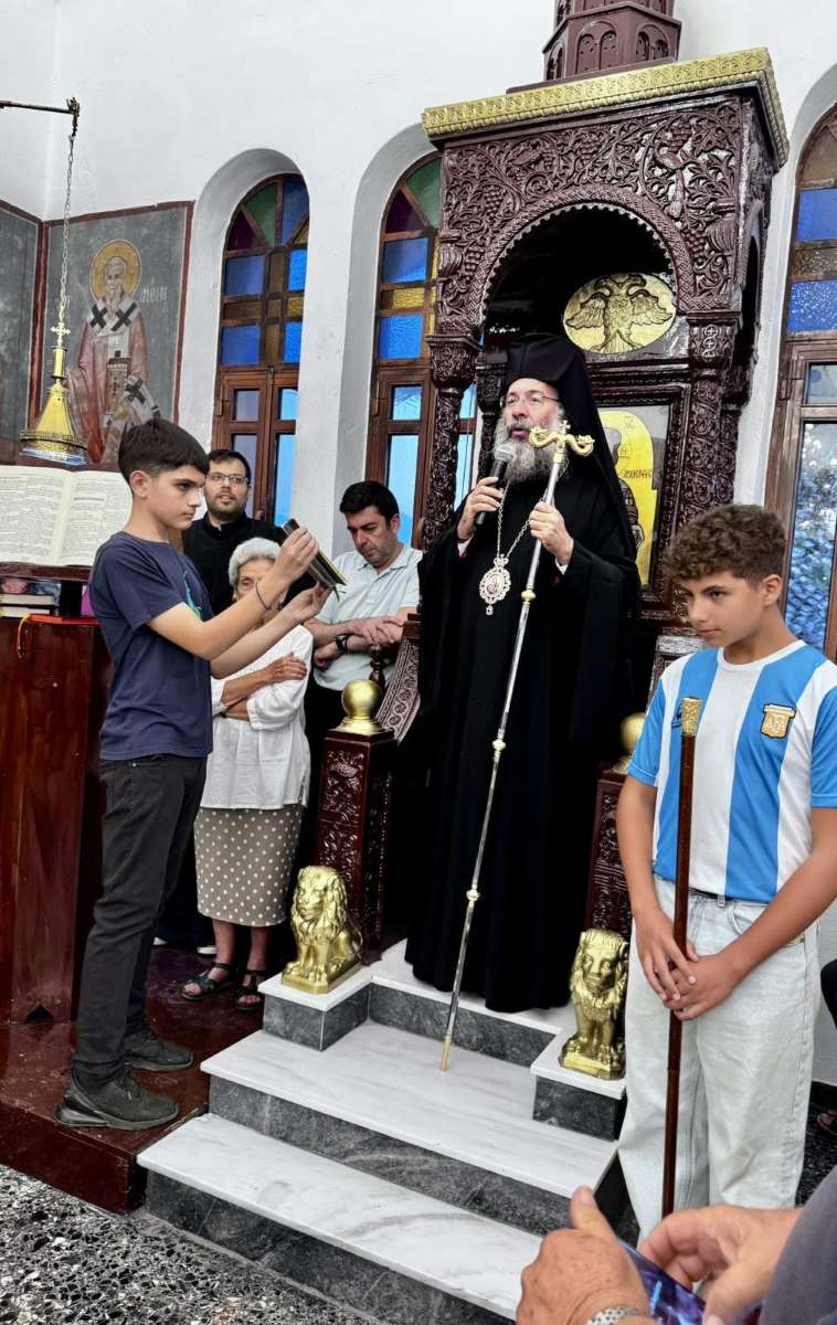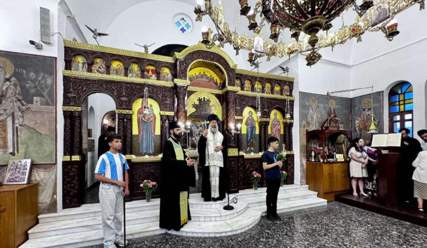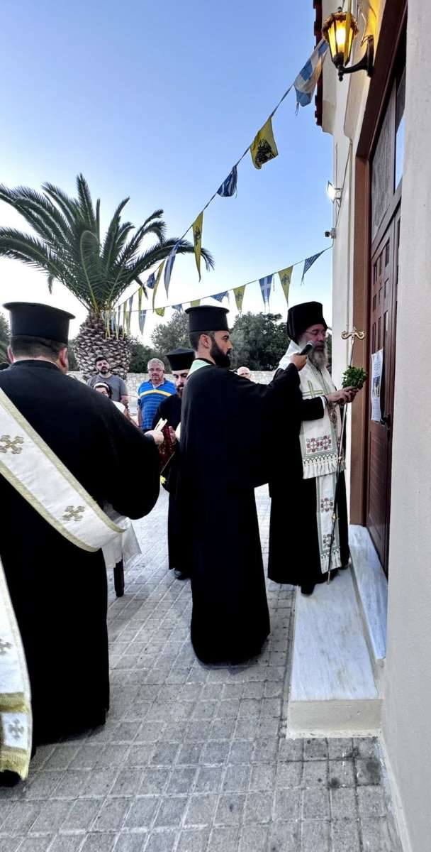 Μετά την ακολουθία των Θυρανοιξίων, ο Σεβασμιώτατος χοροστάτησε κατά τον Πανηγυρικό Εσπερινό της εορτής του Αγίου Αποστόλου Τίτου και στην προσλαλιά του αναφέρθηκε στα διαχρονικά μηνύματα του Πρωτεπισκόπου και Πάτρωνος της Εκκλησίας Κρήτης, ευχαριστώντας τον Εφημέριο, το Εκκλησιαστικό Συμβούλιο και όλους, όσοι με κάθε τρόπο συνέδραμαν στην ανακαίνιση και αποκατάσταση του Ιερού Ναού .μετά την πρόσφατη πυρκαγιά.