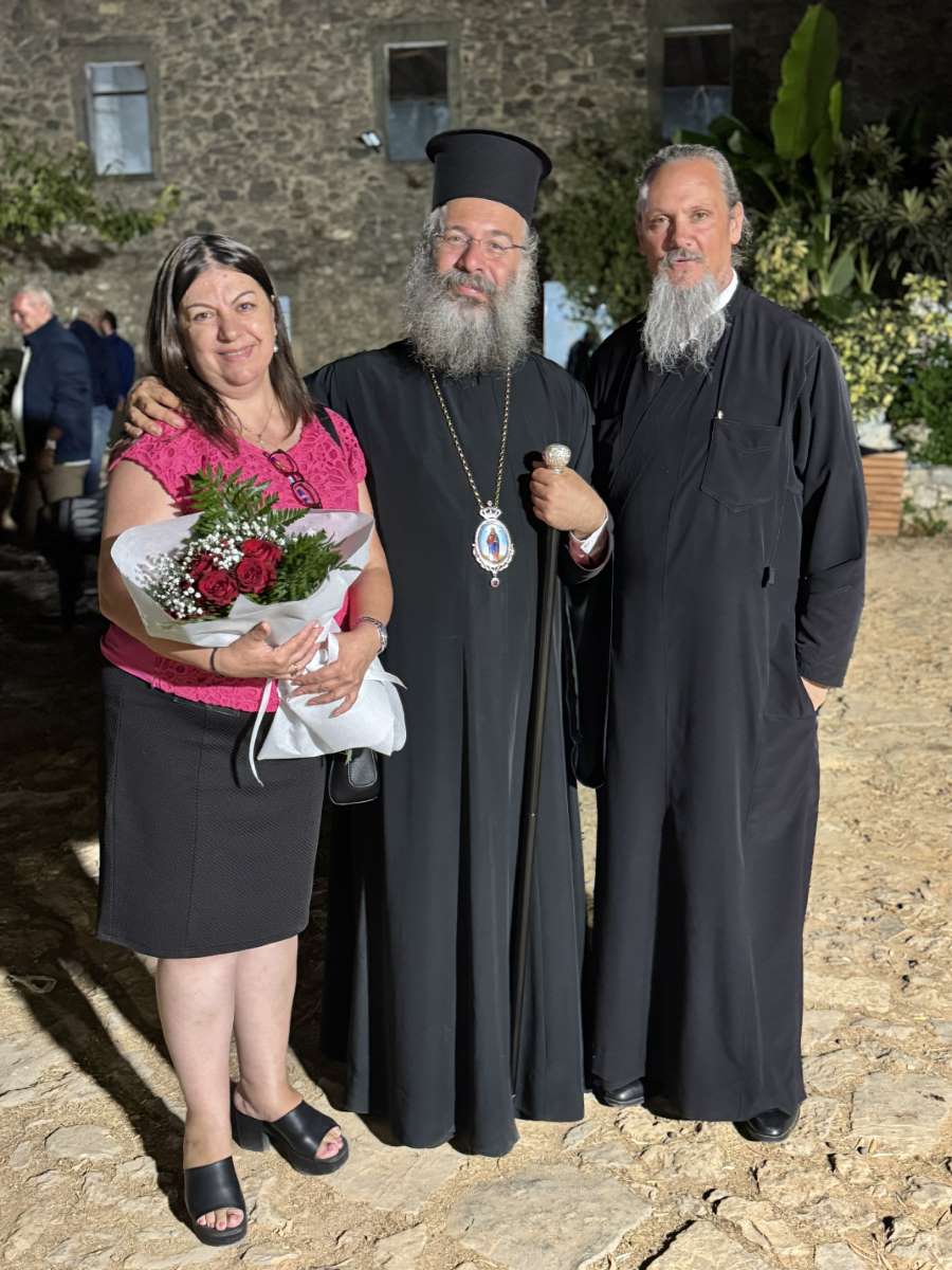 Ευχαρίστησε επίσης θερμά τον Ηγούμενο της Ιεράς Μονής Χαλέπας, Πανοσιολ. Αρχιμ. Πορφύριο Αουάντ, ο οποίος πάντοτε με προσήνεια και με ανοικτή αγκαλιά υποδέχεται όλους τους ανθρώπους και συμβάλλει στο να είναι διαρκώς γεμάτη από έμψυχες εικόνες του Θεού η αυλή της ιστορικής αυτής Μονής.