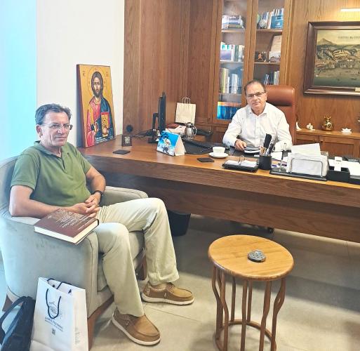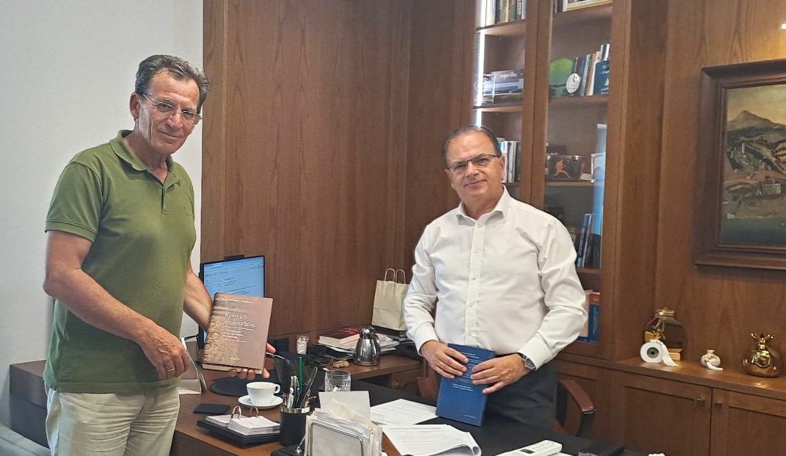Μια ενδιαφέρουσα συζήτηση γύρω από την παραβατικότητα στην Κρήτη και τη σύνδεσή της με την παράδοση, προκάλεσε η επίσκεψη του Ρεθύμνιου συγγραφέα- πρώην Ανώτατου Αξιωματούχου ΕΛ.ΑΣ & Δρ Παντείου Παν/μίου Γιώργου Παπακωνσταντή στον Δήμαρχο Ρεθύμνης & Πρόεδρο ΠΕΔ Κρήτης κ. Γιώργη Μαρινάκη.