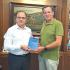 Αφού συνεχάρη τον κ. Παπακωνσταντή για τη συνολική ποιοτική, ευρεία και εγνωσμένη δράση του, ο Δήμαρχος τον ευχαρίστησε για το βιβλίο και για τη συνομιλία τους και του πρόσφερε, ως ανάμνηση της επίσκεψής του στο Δημαρχείο, την εξαιρετική έκδοση «Κρητικό Γλωσσάριο» του Μ. Ιδομενέως.