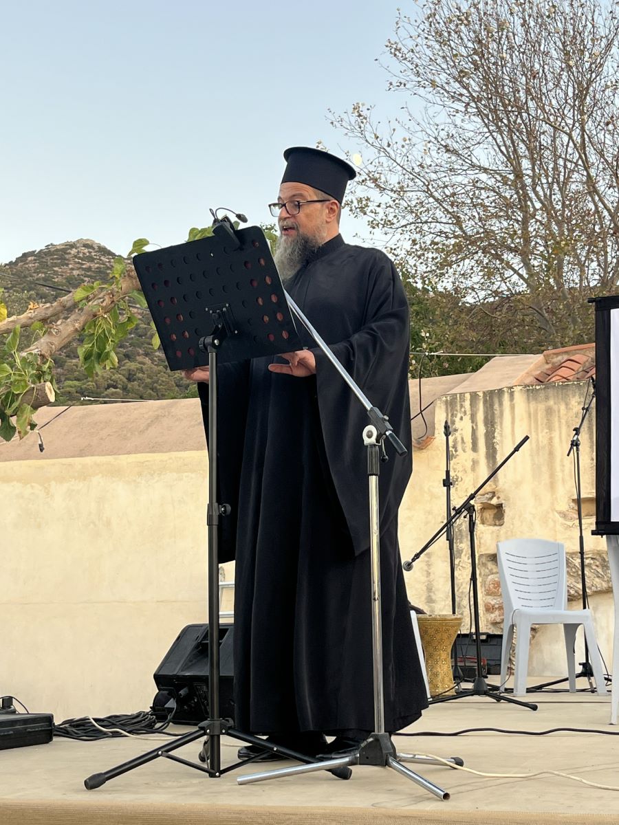 Η εκδήλωση ξεκίνησε με την ανάγνωση του Σεπτού Πατριαρχικού Μηνύματος της ΑΘΠ του Οικουμενικού Πατριάρχου κ.κ. ΒΑΡΘΟΛΟΜΑΙΟΥ από τον Πανοσιολ. Αρχιμ. Ρωμανό Αναστασιάδη, ενώ ακολούθησαν χαιρετισμοί από τον Πρόεδρο του Δημοτικού Συμβουλίου Μυλοποτάμου κ. Γεώργιο Κιαγιά, εκ μέρους του Δημάρχου Μυλοποτάμου κ. Γεωργίου Κλάδου, και από τον Ηγούμενο της Ιεράς Μονής Βωσάκου, Πανοσιολ. Αρχιμ. Τιμόθεο Παναγιωτάκη.