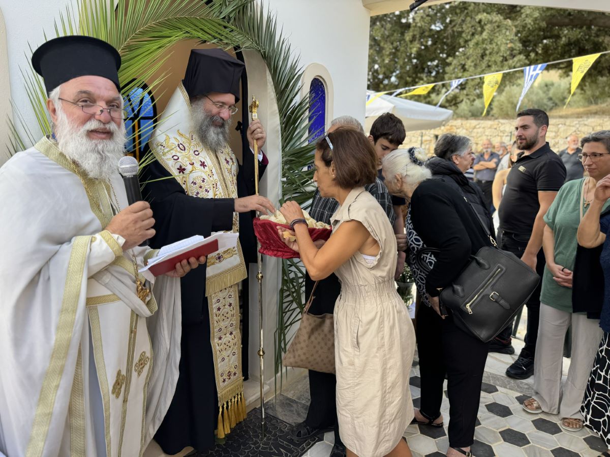 Ο Σεβασμιώτατος Ποιμενάρχης κ. Πρόδρομος, στην προσλαλιά του, συνεχάρη την οικογένεια του κ. Γεωργίου Μαραγκουδάκη, η οποία τιμά την επέτειο αυτή των Εγκαινίων του Ναού, και ευχήθηκε πάντοτε ο τόπος μας, η Κρήτη μας, να αναδεικνύει Αγίους και ήρωες.