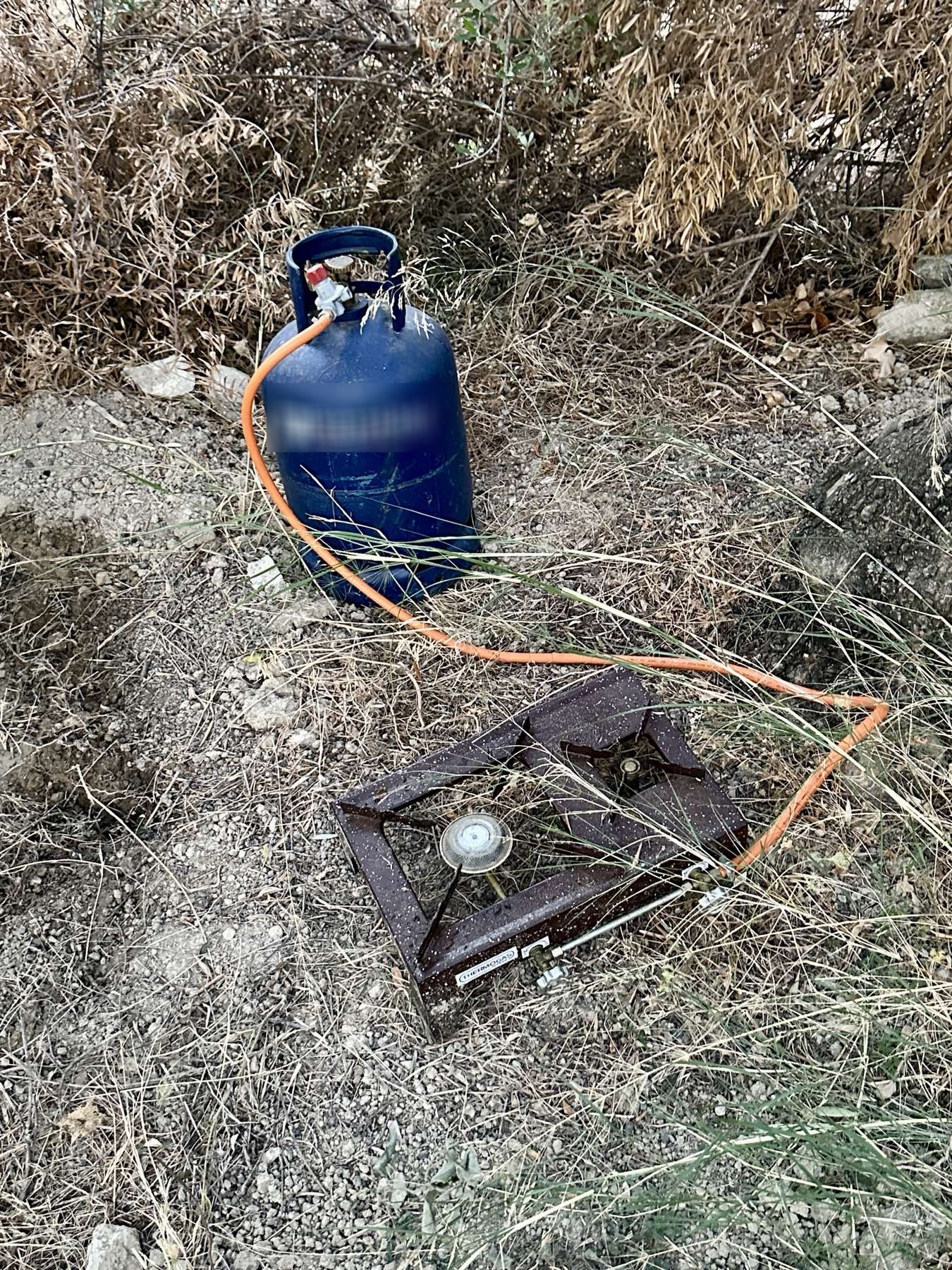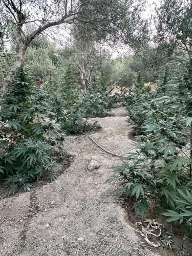 Εντός της φυτείας εντοπίσθηκε και αυτοσχέδιος χώρος διαμονής αποτελούμενος από χώρο σίτισης και κατάκλισης.