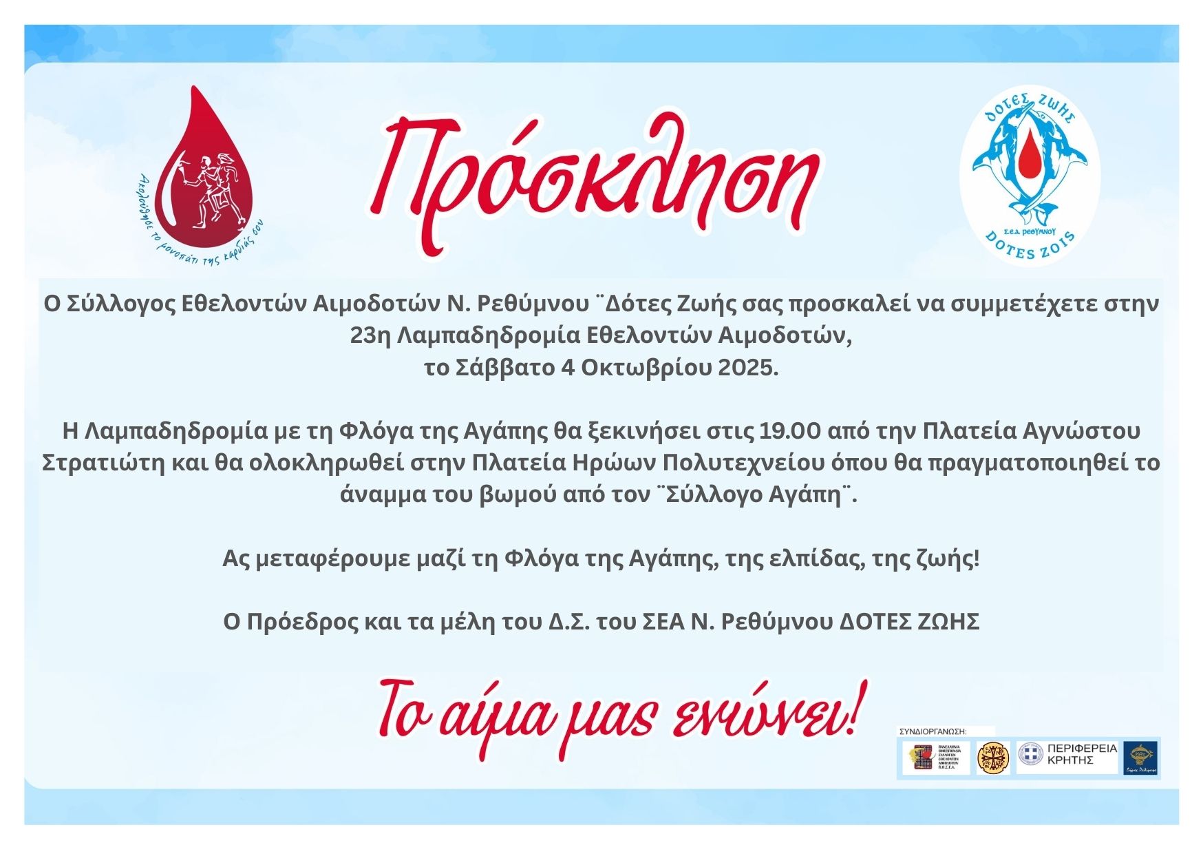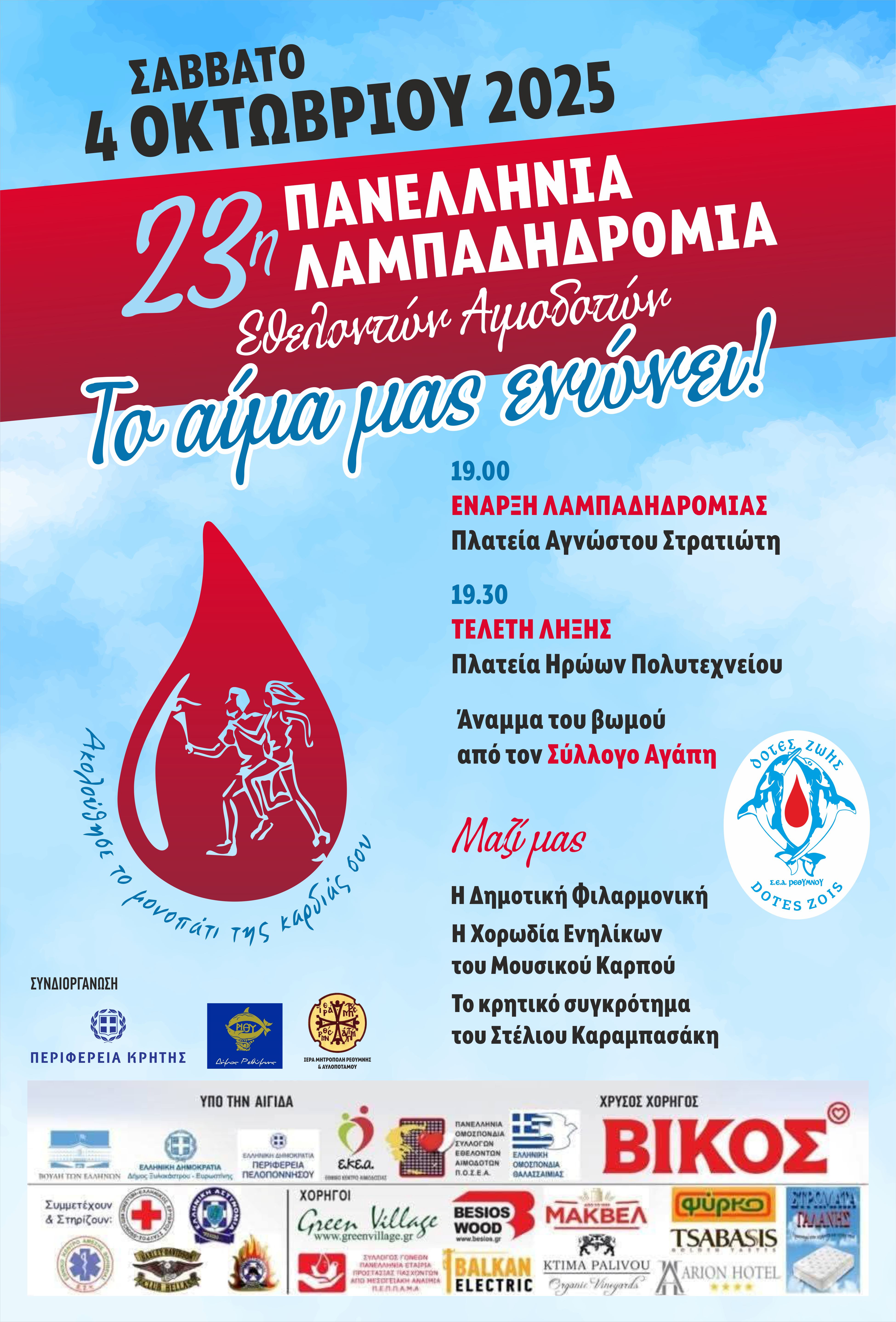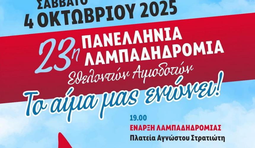 σας προσκαλεί στην 23η Λαμπαδηδρομία Εθελοντών Αιμοδοτών,