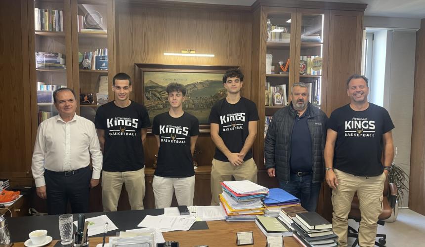 Ο Δήμαρχος δέχθηκε στο γραφείο του αντιπροσωπεία των Cretan Kings BC σε μια εθιμοτυπική συνάντηση ενόψει της έναρξης του Πρωταθλήματος καλαθοσφαίρισης της National League-2 στο πλαίσιο της οποίας η ομάδα του Ρεθύμνου υποδέχεται την Κυριακή, 5 Οκτωβρίου 2025, στις 17:00 στο γήπεδο «Μελίνα Μερκούρη» τον Πανναξιακό.