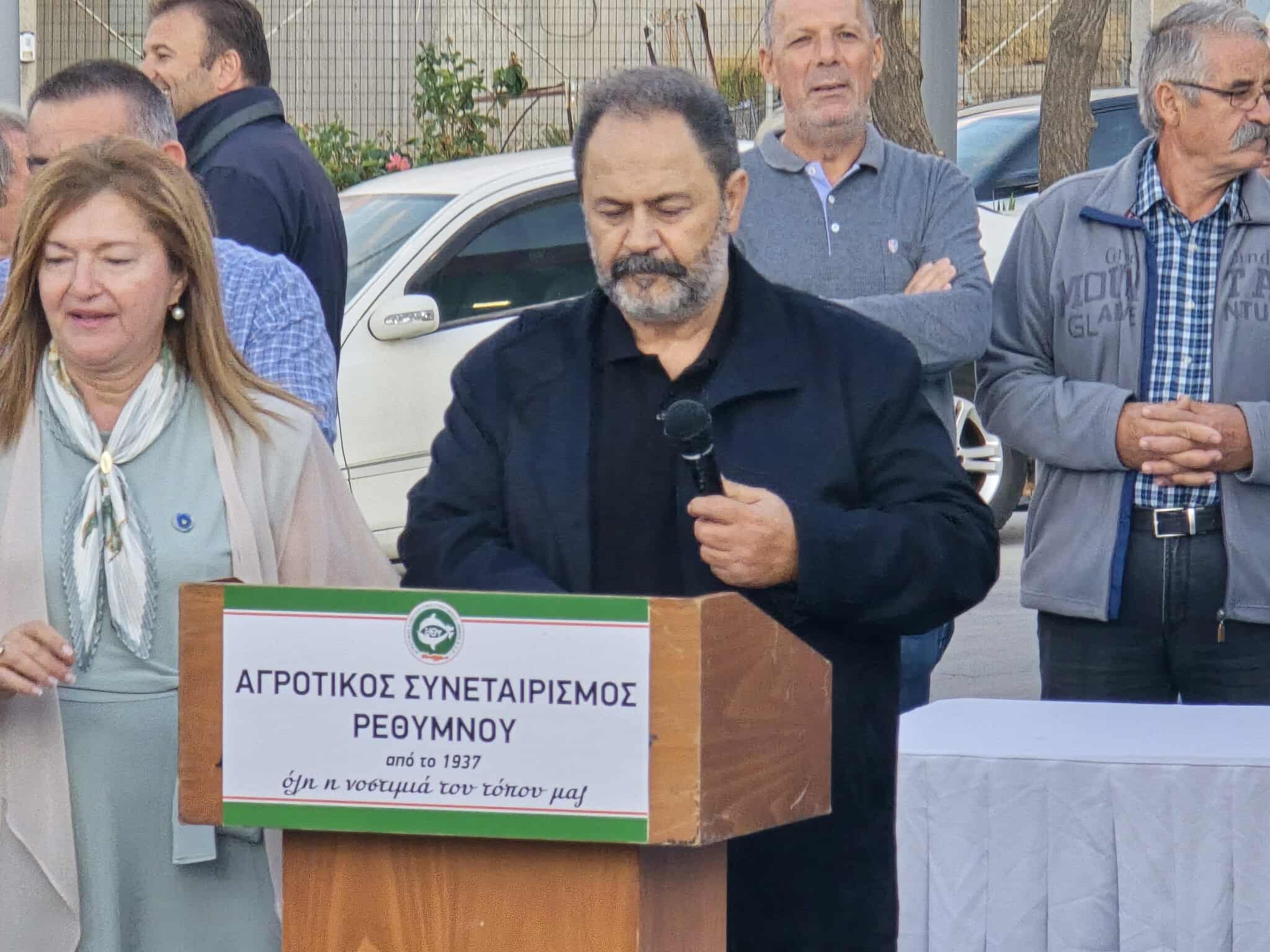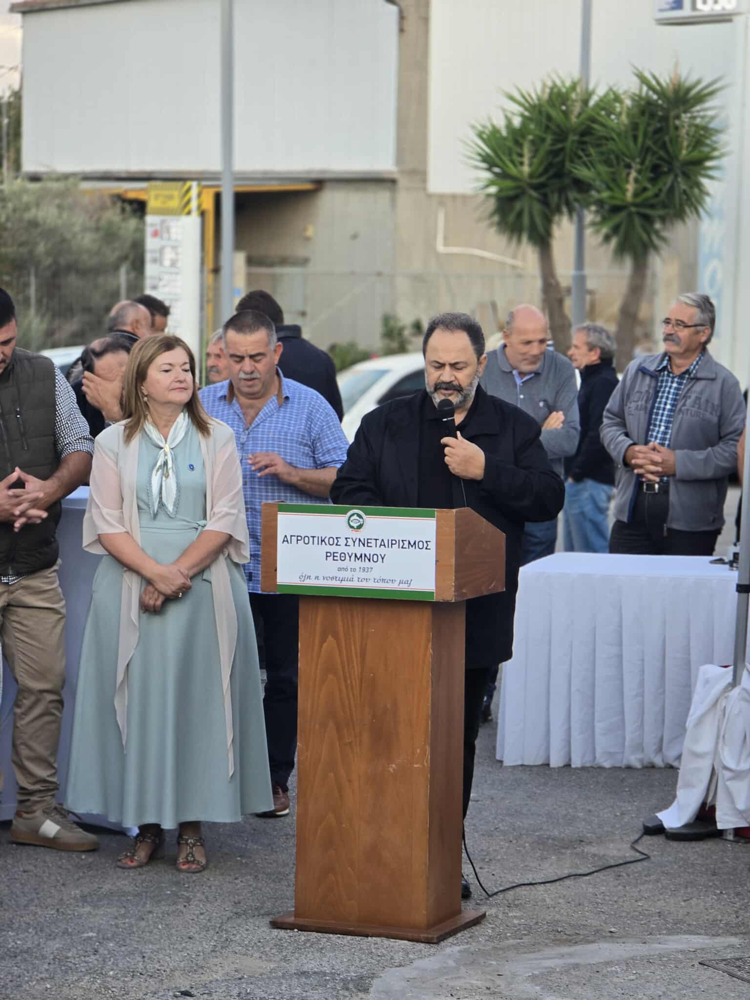 "Εκ μέρους του Αγροτικού Συνεταιρισμού Ρεθύμνου, σας καλωσορίζω θερμά στα εγκαίνια του νέου μας πρατηρίου, εδώ, στις εγκαταστάσεις μας στα Τρία Μοναστήρια.