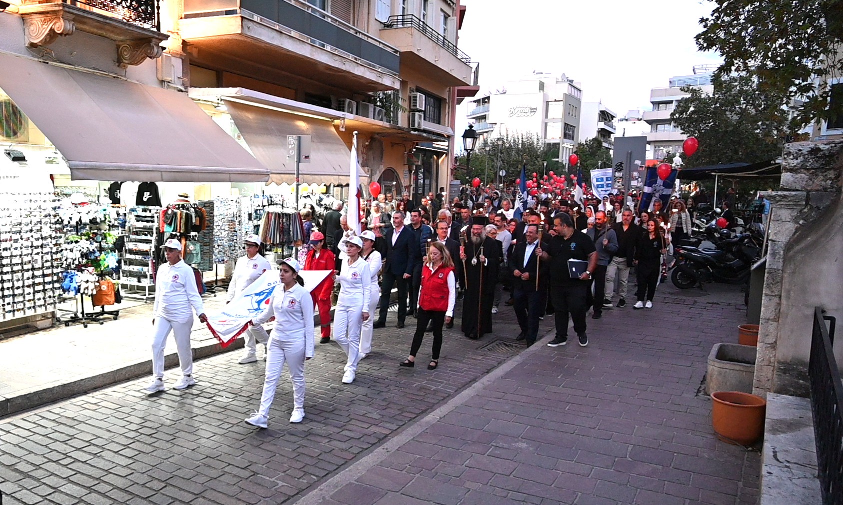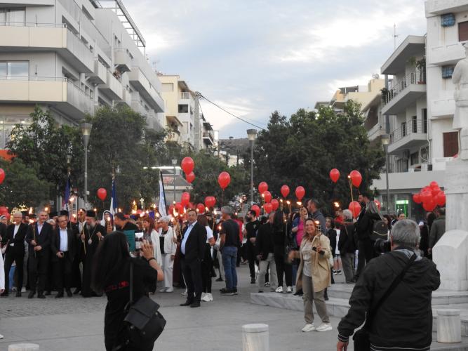 Ακολούθησε η πορεία της φλόγας από τους Τέσσερις Μάρτυρες στην Πλατεία Αγνώστου Στρατιώτη δια της οδού Γερακάρη και στην συνέχεια η φλόγα μεταφέρθηκε στην Πλατεία Ηρώων Πολυτεχνείου, στην αυλή του Περιφερειακού Μεγάρου, δια της οδού Αρκαδίου.