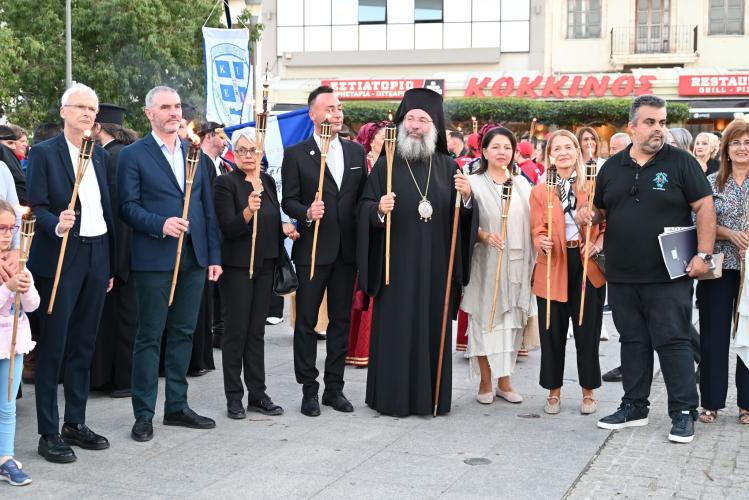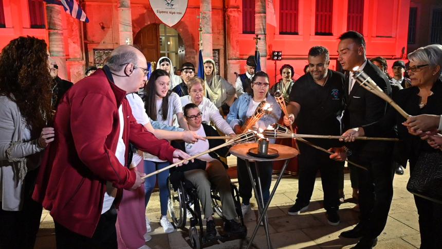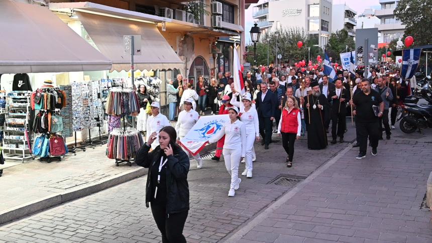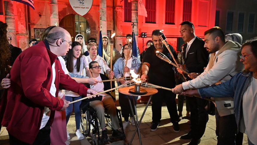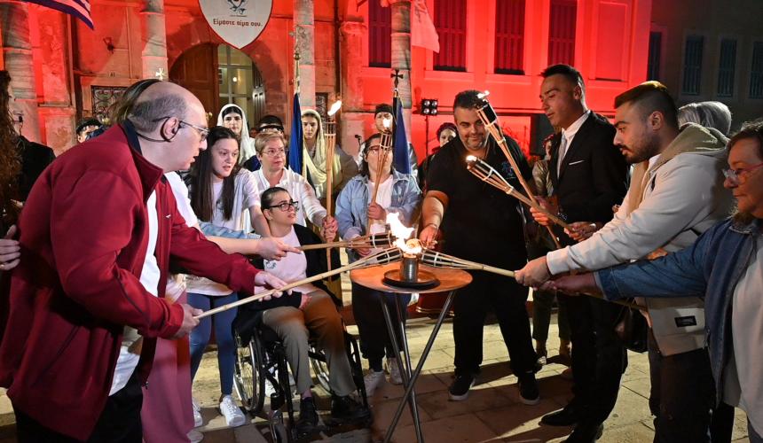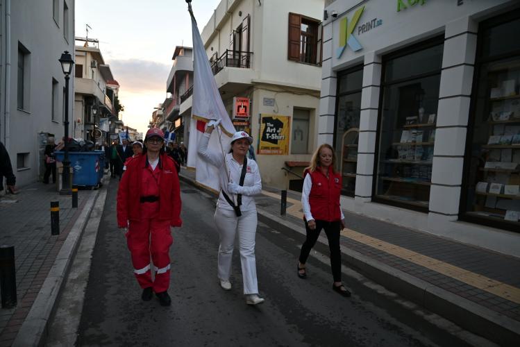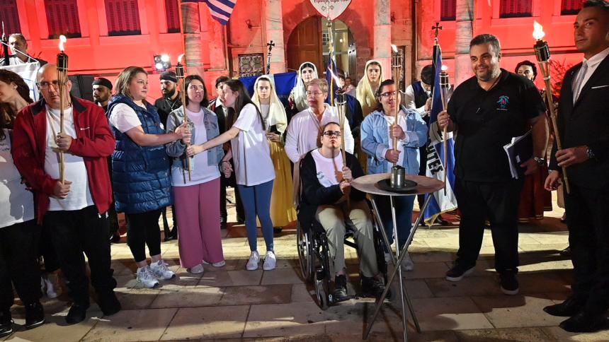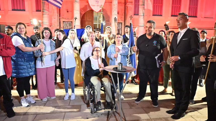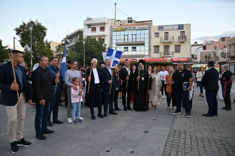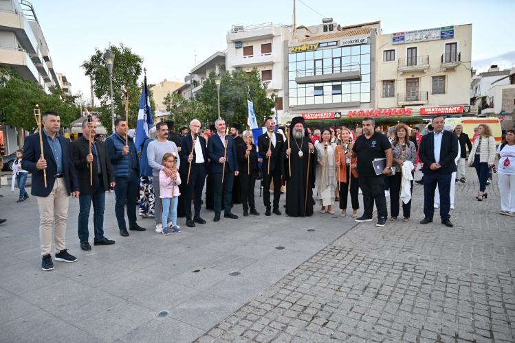 Στην πλατεία της Αντιπεριφέρειας έγινε η επίσημη τελετή της Λαμπαδηδρομίας. Ο Σεβασμιώτατος Μητροπολίτης Ρεθύμνης και Αυλοποτάμου κ. Πρόδρομος παρέδωσε την φλόγα στους ωφελούμενους του Συλλόγου Αγάπη που άναψαν τον βωμό.