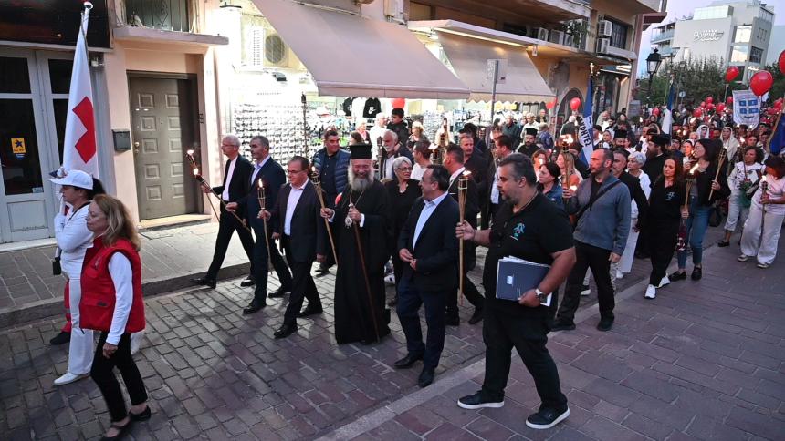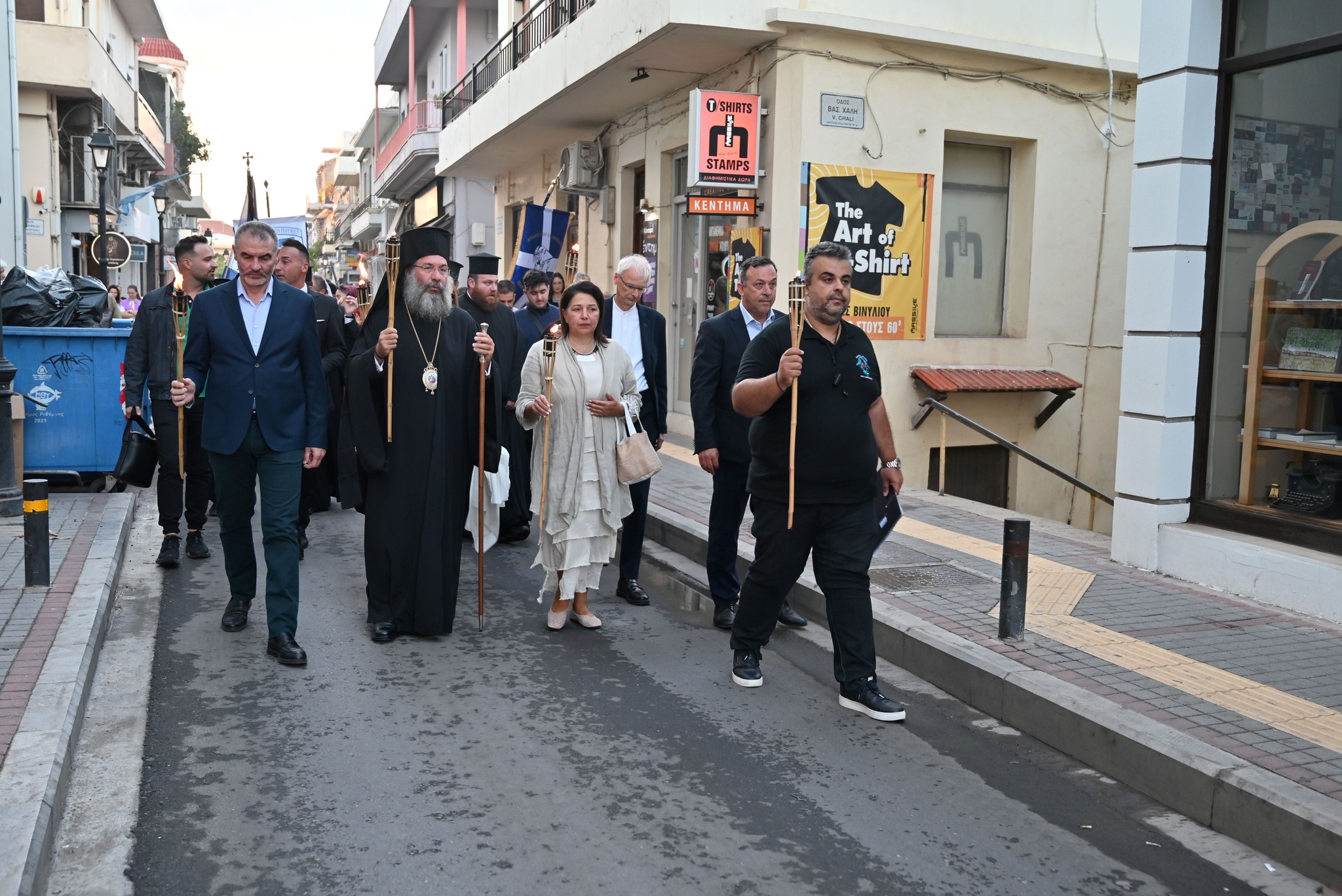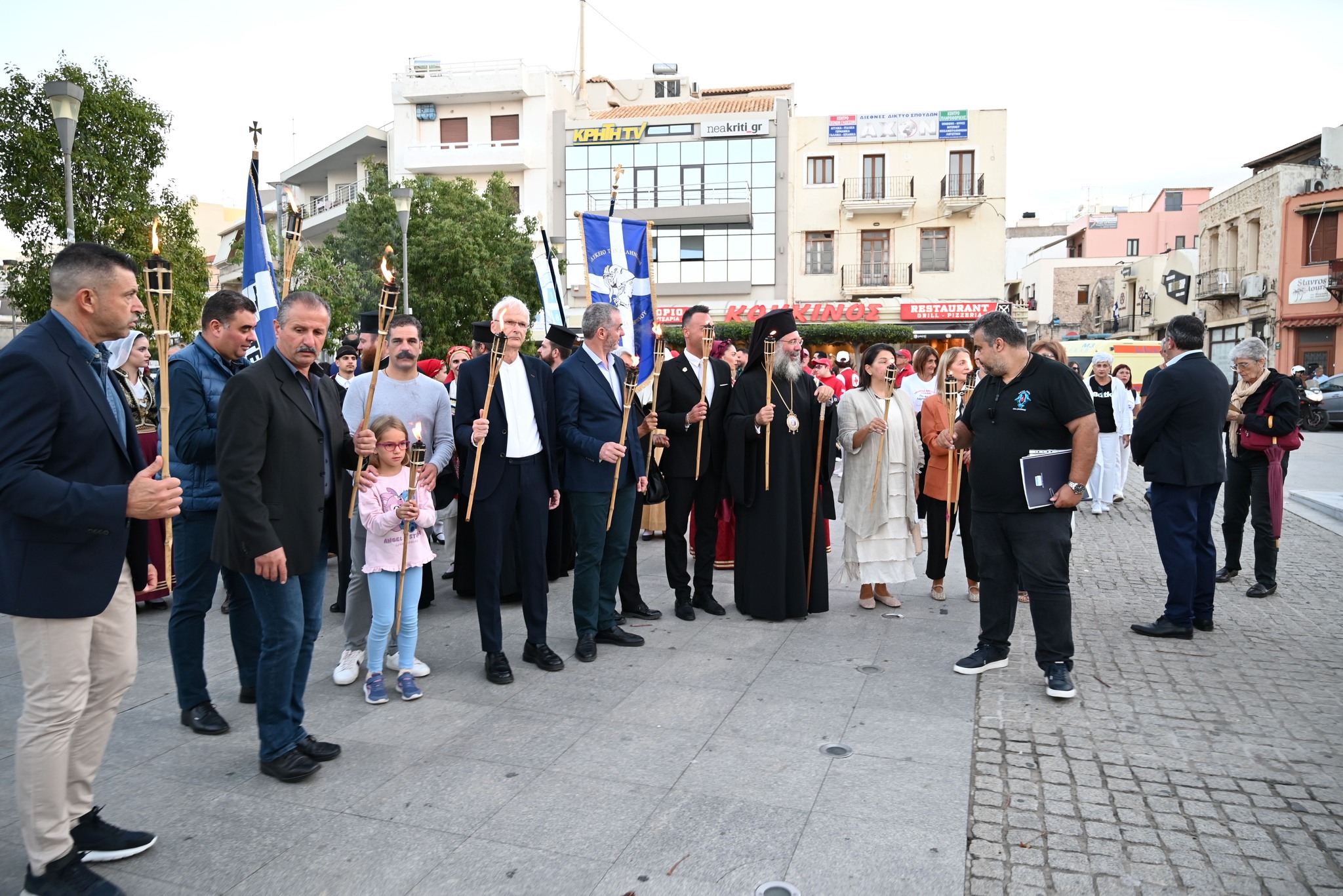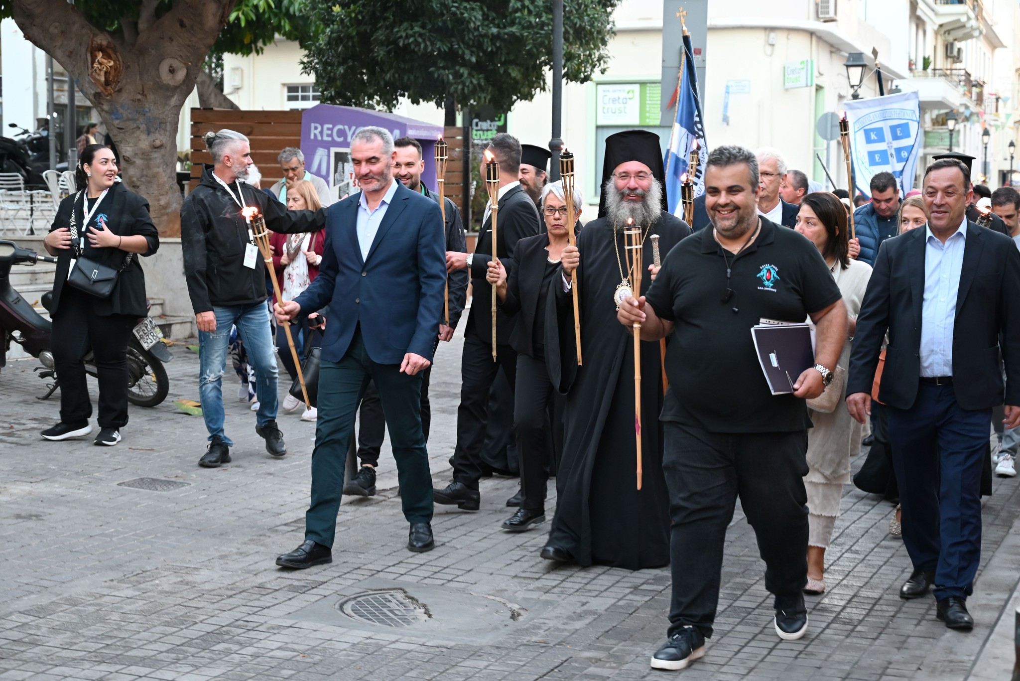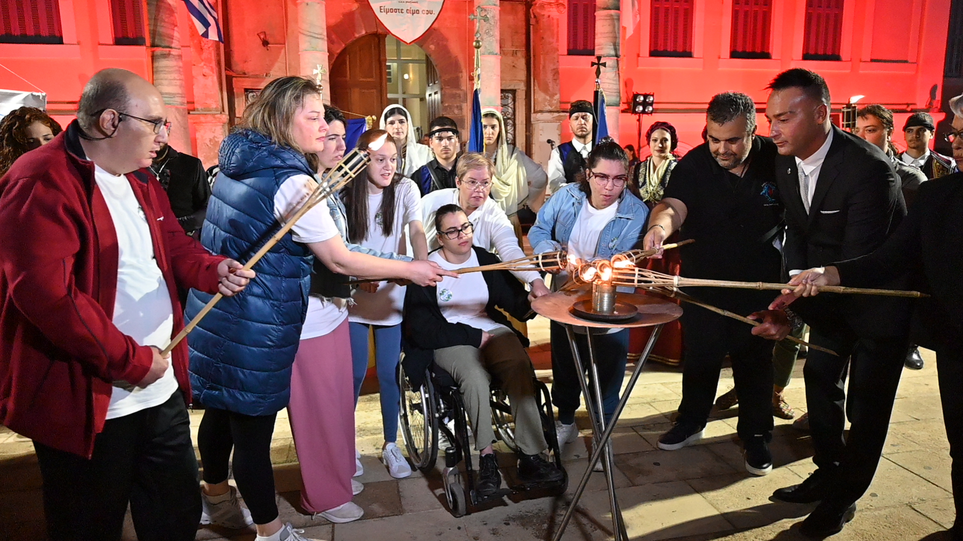 Στην πλατεία της Αντιπεριφέρειας έγινε η επίσημη τελετή της Λαμπαδηδρομίας. Ο Σεβασμιώτατος Μητροπολίτης Ρεθύμνης και Αυλοποτάμου κ. Πρόδρομος παρέδωσε την φλόγα στους ωφελούμενους του Συλλόγου Αγάπη που άναψαν τον βωμό.