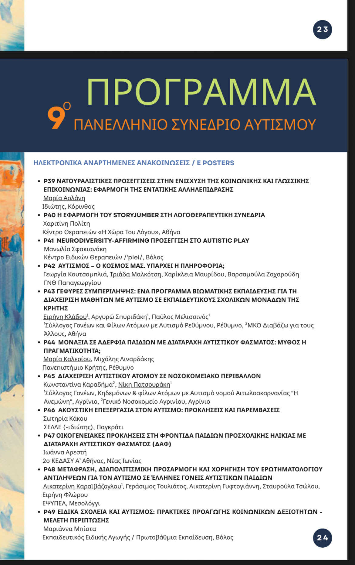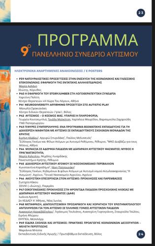 Ο τίτλος της ανακοίνωσης είναι «ΓΕΦΥΡΕΣ ΣΥΜΠΕΡΙΛΗΨΗΣ: ΕΝΑ ΠΡΟΓΡΑΜΜΑ ΒΙΩΜΑΤΙΚΗΣ ΕΚΠΑΙΔΕΥΣΗΣ ΓΙΑ ΤΗ ΔΙΑΧΕΙΡΙΣΗ ΜΑΘΗΤΩΝ ΜΕ ΑΥΤΙΣΜΟ ΣΕ ΕΚΠΑΙΔΕΥΤΙΚΟΥΣ ΣΧΟΛΙΚΩΝ ΜΟΝΑΔΩΝ ΤΗΣ ΚΡΗΤΗΣ».