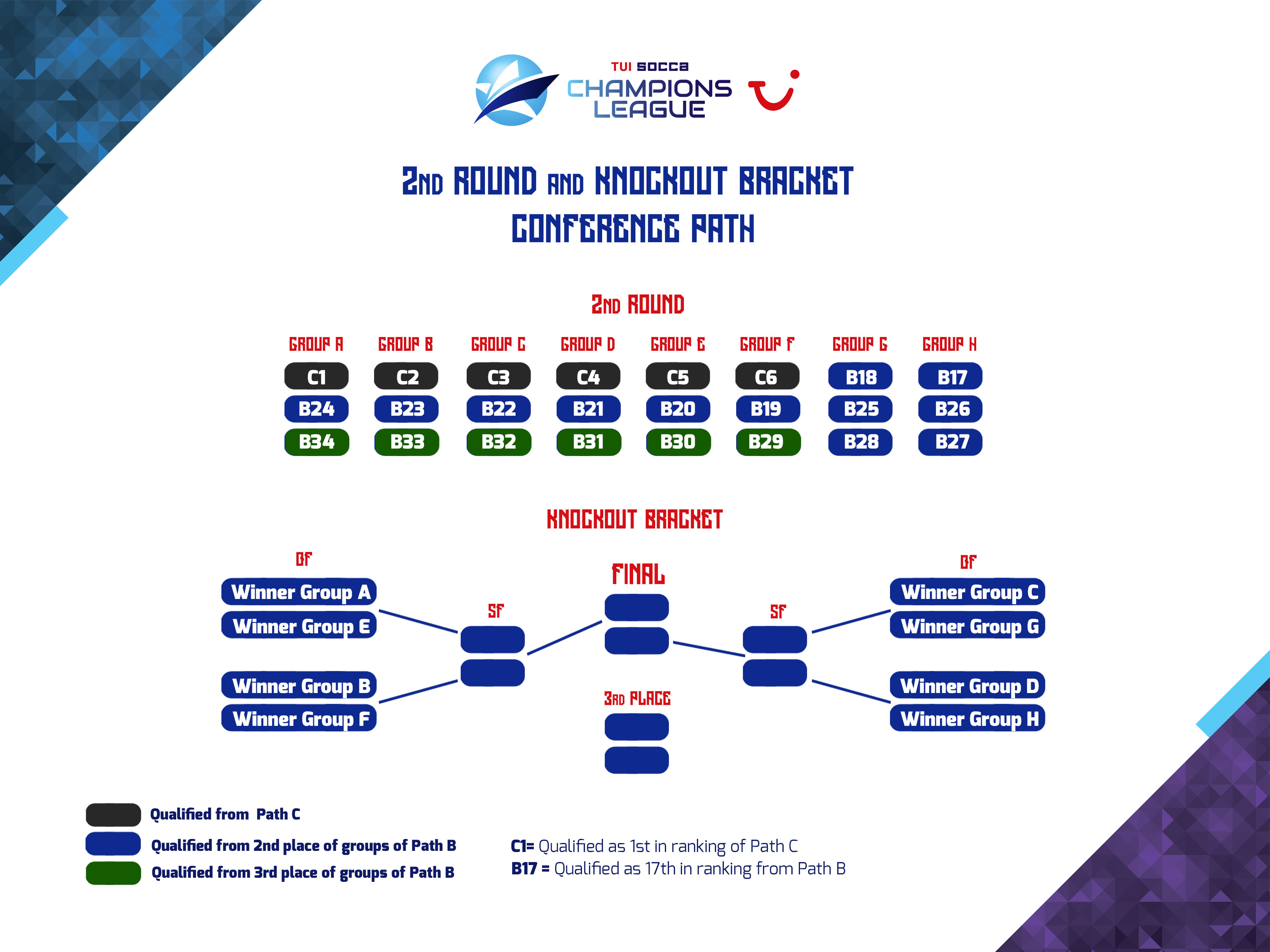 Οι 106 ομάδες έχουν κατανεμηθεί ως εξής: 44 σε 11 ομίλους των τεσσάρων στην κατηγορία «Champions», 56 ομάδες σε 14 ομίλους των τεσσάρων στην κατηγορία «Contracts» και έξι ομάδες σε δυο ομίλους των τριών στην κατηγορία «Conference».